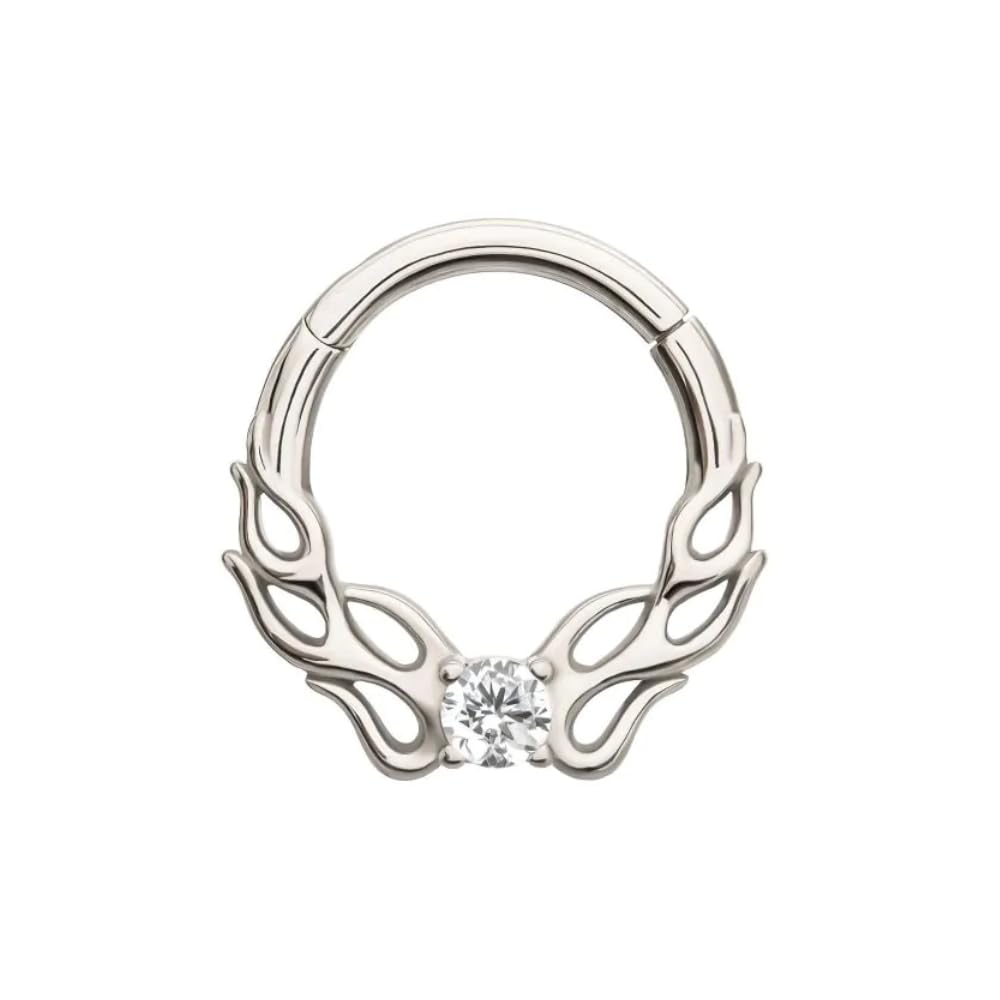 14-16GA 316L – Anillo de acero inoxidable con circonita cúbica frontal de llama con bisagras segmento