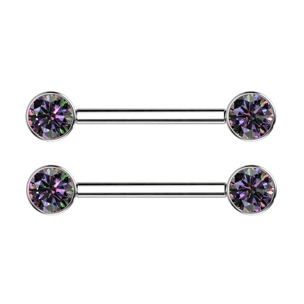 14G Implant Grade Titanium Internally Threaded Bezel Set Crystal Nipple Barbells, Sold as a Pair