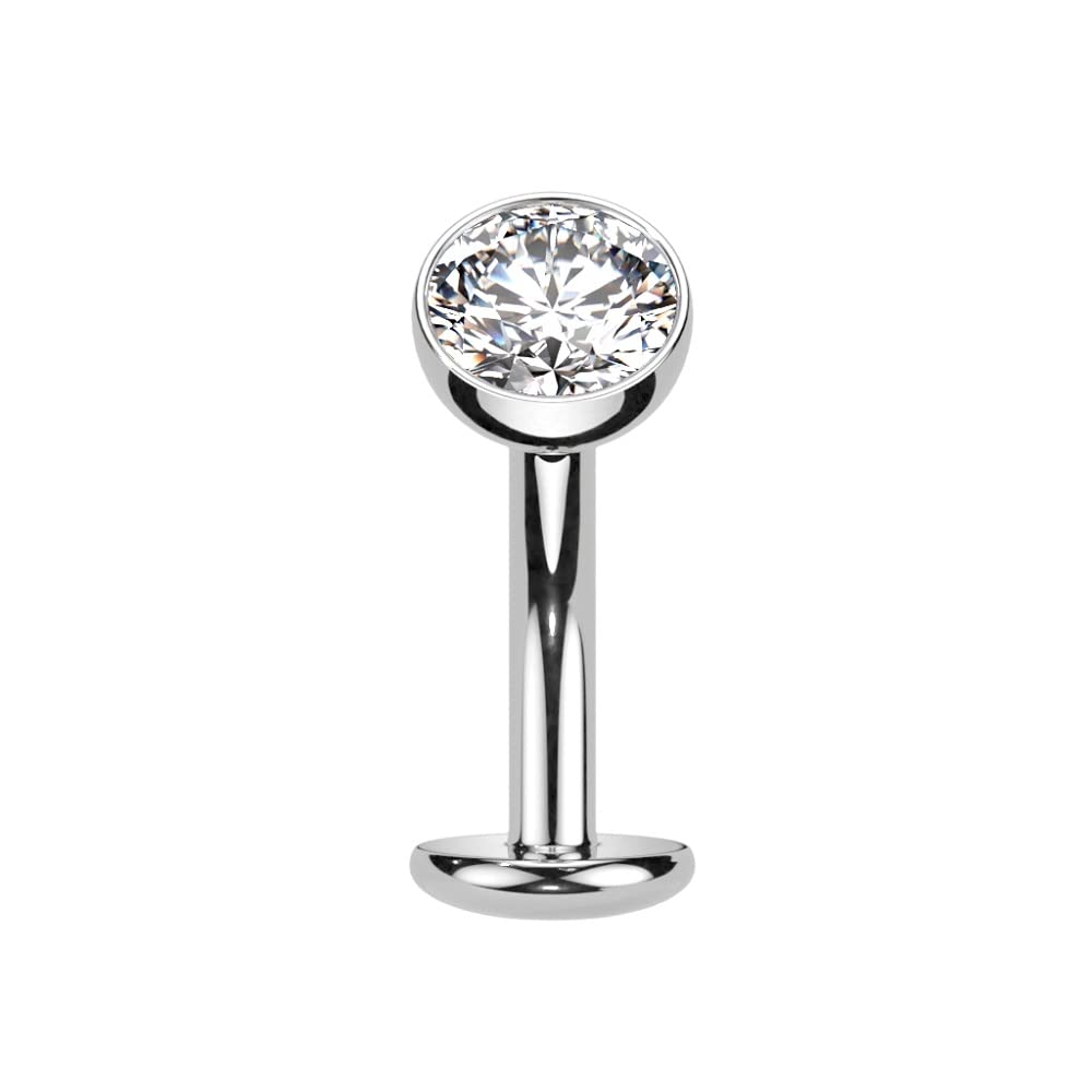 14GA F136 – Anillo de ombligo flotante con base convexa de titanio sin rosca, con vidrio CZ, Metal, circonita