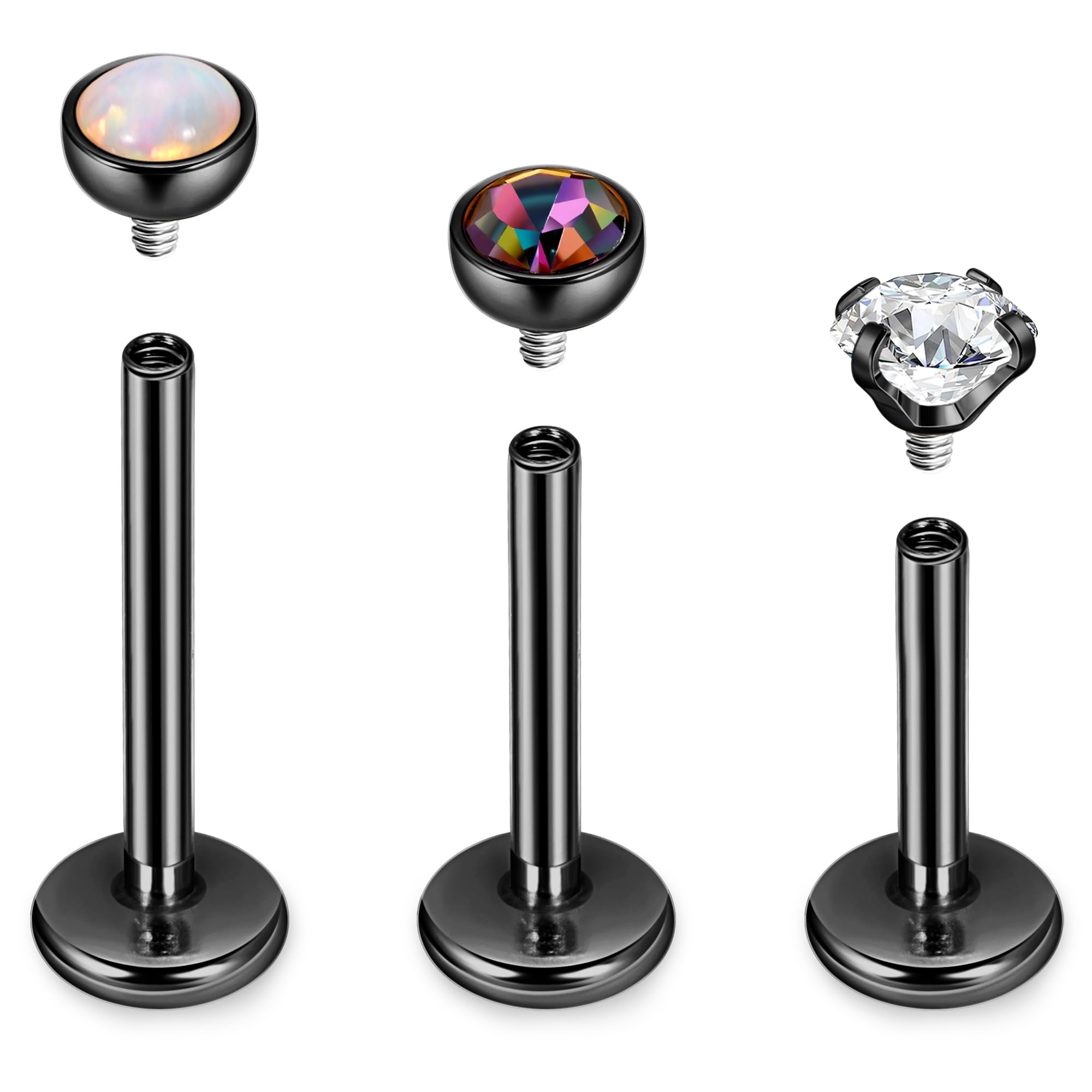 16G 18G 3PCS G23 Titanium Internally Threaded Labret Monroe Stud Lip Rings Opal CZCartilage Helix Tragus Stud Earrings Conch Stud Titanium Piercing Jewelry for Sensitive Skin 6MM 8MM 10MM