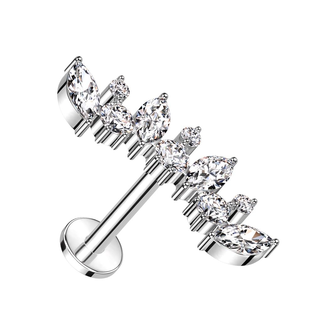 16GA ASTM F-136 – tornillo de titanio de grado implante roscado internamente multi marquise CZ vidrio curvado trasero plano