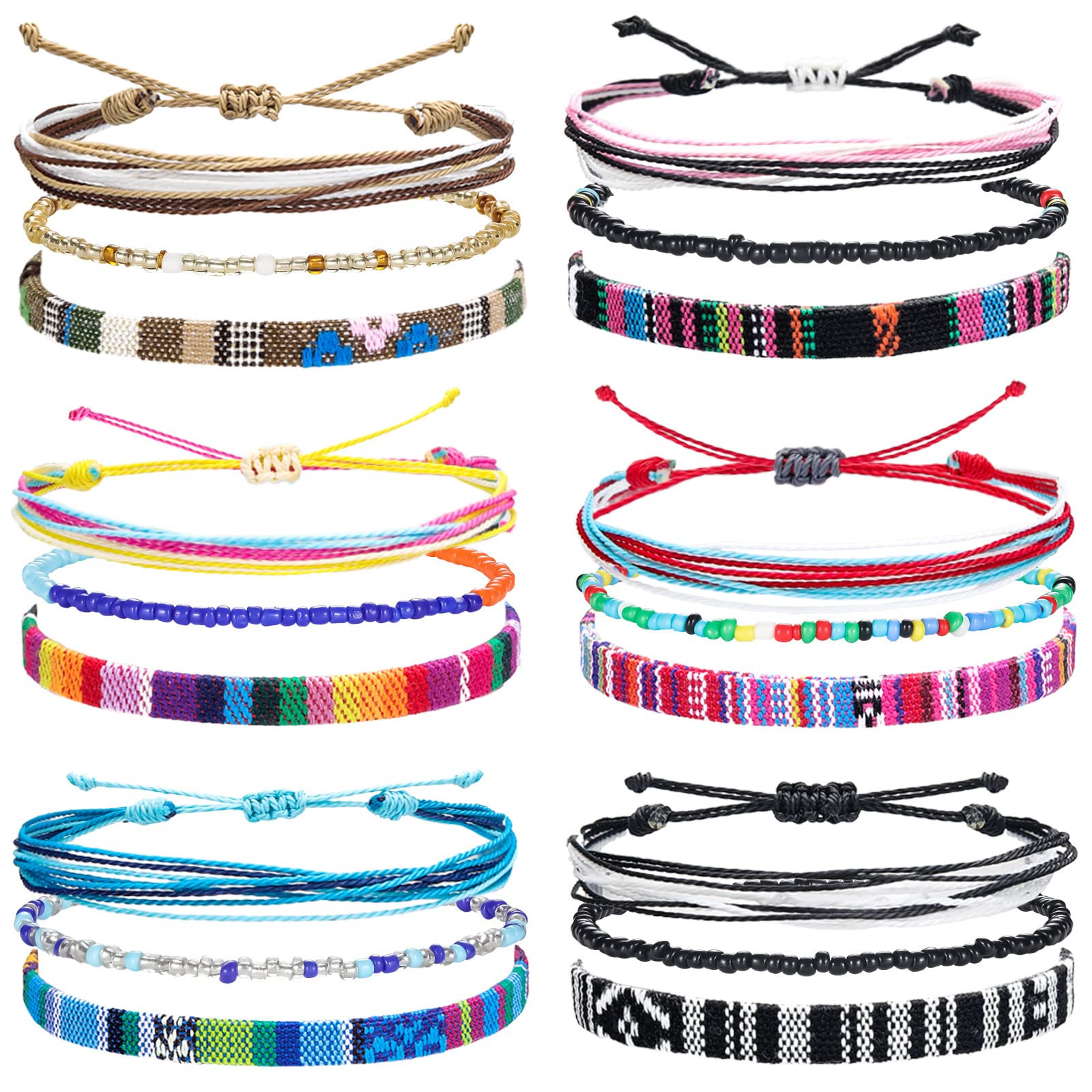 18 pulseras bohemias para surfista al tobillo, ajustable, impermeable, trenzadas, tobilleras con abalorio, unisex, hechas a mano, pulsera colorida de Bohemia para mujeres y hombres