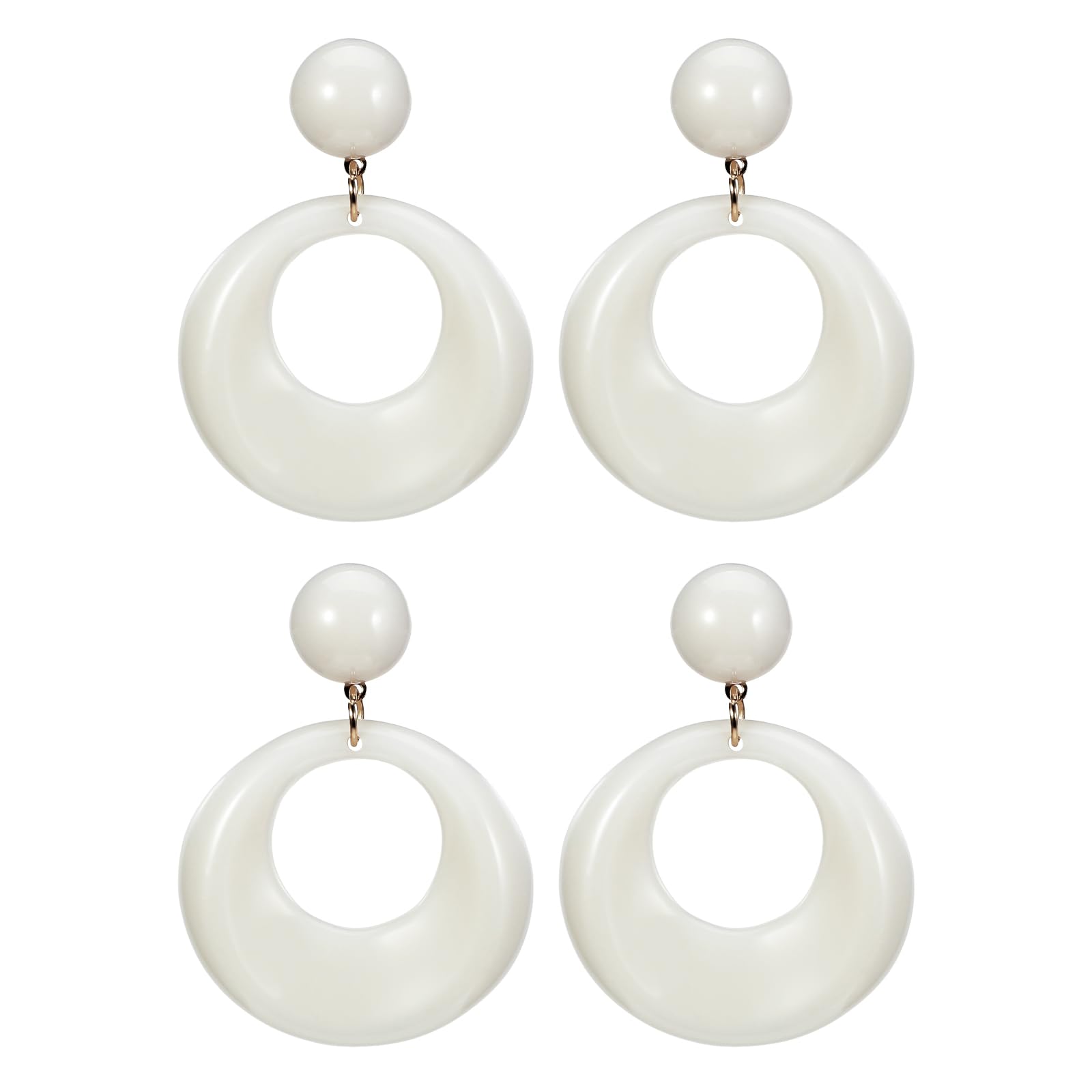 2 pares de aretes geométricos de acrílico retro huecos redondos arete blancos declaración de los años 70 joyas para mujer, Resina, No es una piedra preciosa