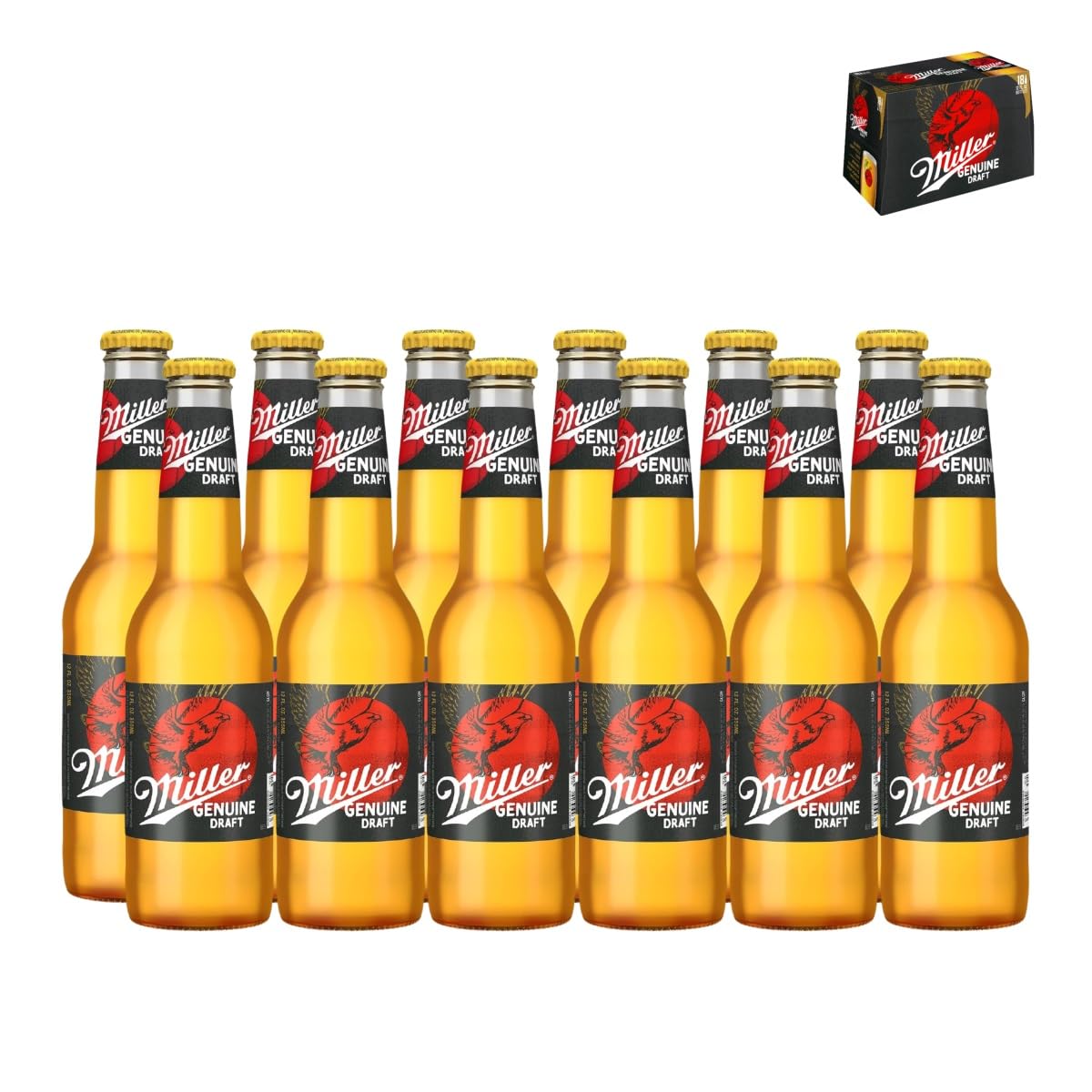 24 Pack de Cervezas Importadas Miller Genuine Draft 355 ml – Cerveza Lager Premium Tipo Barril con 4 Filtrados, Aroma a Malta Fresca, Amargor Balanceado y Cuerpo Suave, Hecha con Cebada Spring en Milwaukee, USA