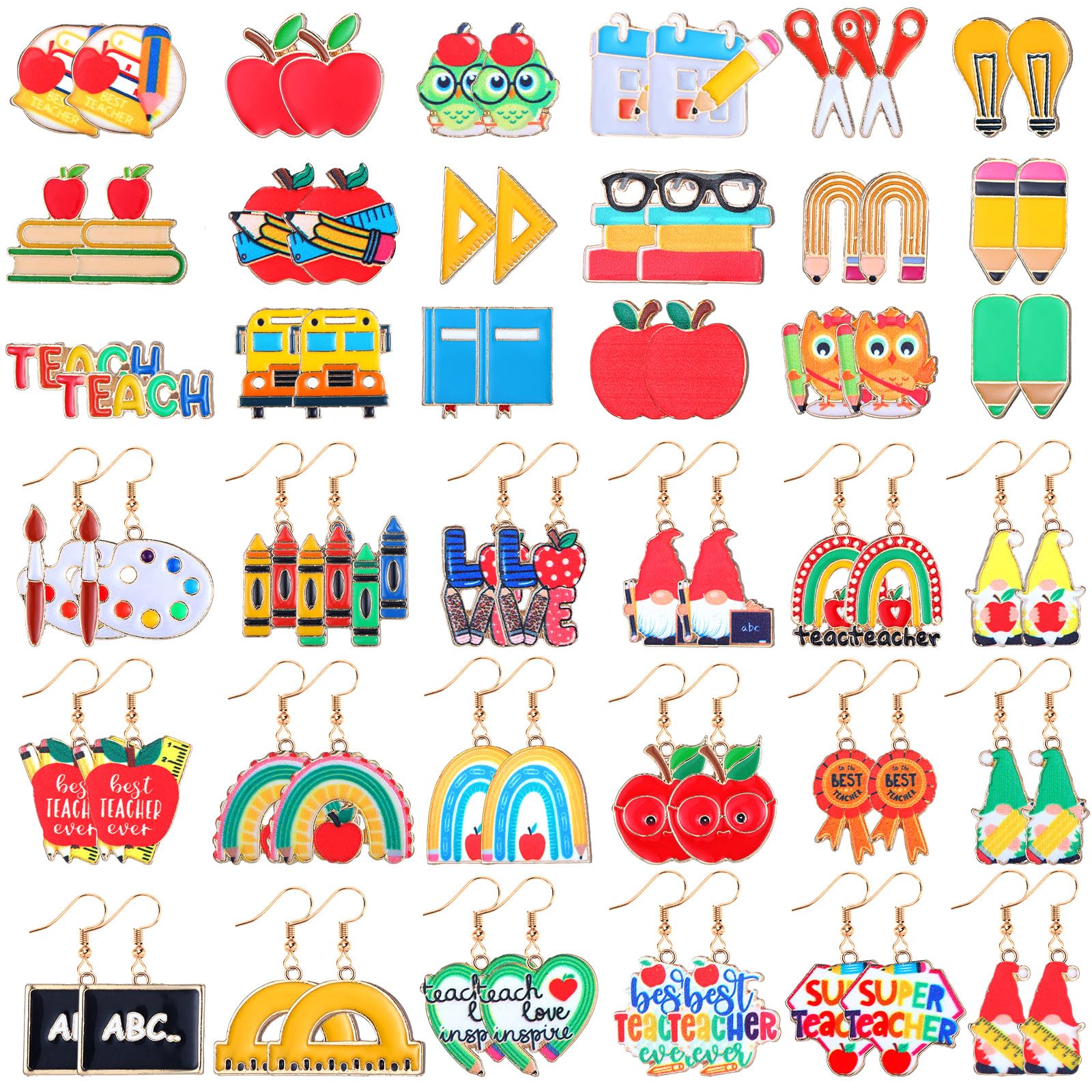 36 pares de aretes para profesora para mujer, bonito libro con regla de lápiz, Apple Stud para regresar a la escuela, regalos para maestros