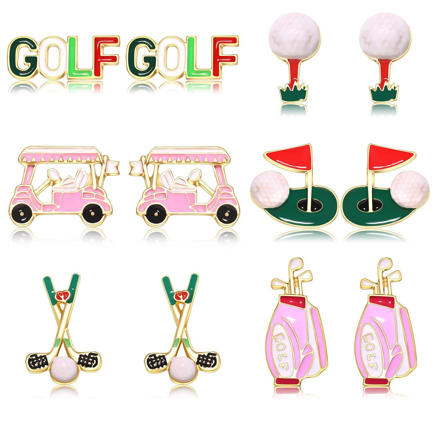 4 pares de aretes de golf, bolsa de pelota de golf, arete, arete, declaración temática de golf, joyería de golf para mujeres, accesorios de golf, accesorios de golf, regalos