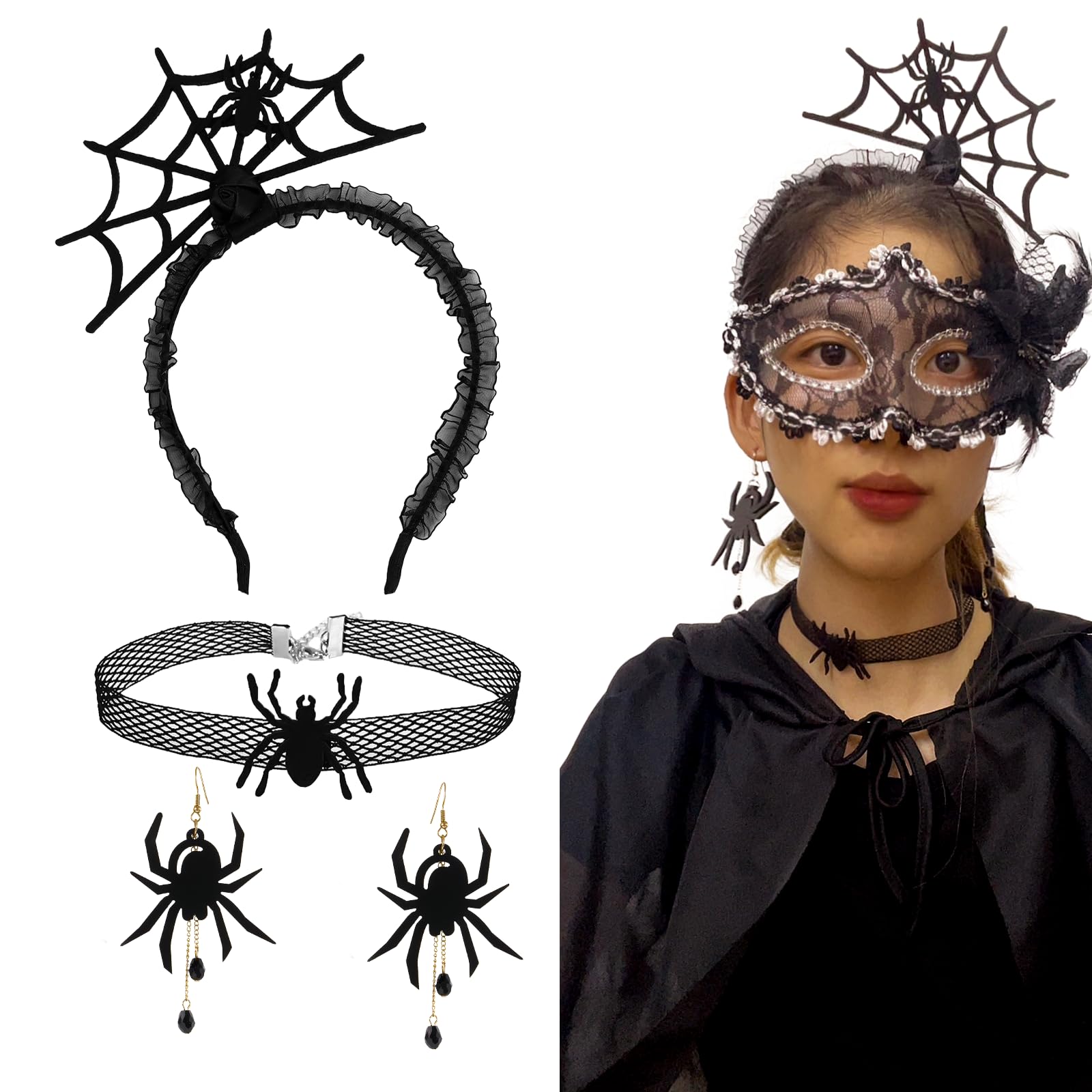4 piezas de accesorios de murciélago de araña, orejas de murciélago de araña, aretes colgantes para mujer y niña