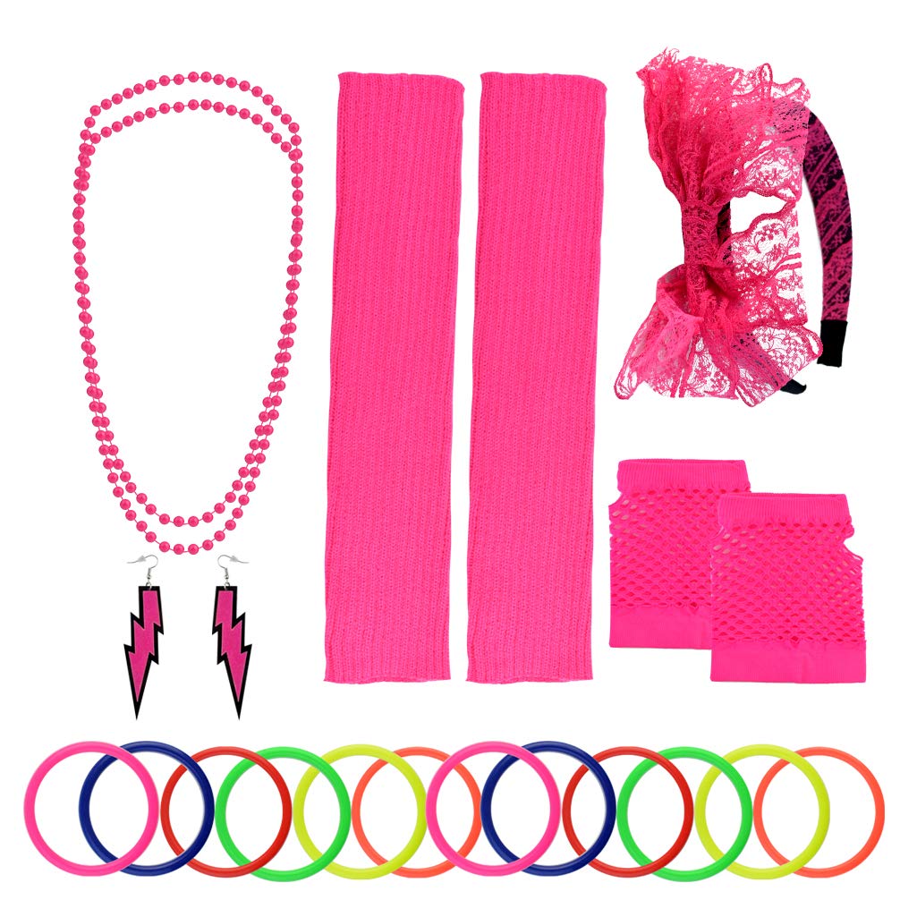 80s – Juego de accesorios para disfraz para mujer, diadema, aretes, guantes de rejilla, calentadores de piernas, collar, pulsera para mujeres de los años 80