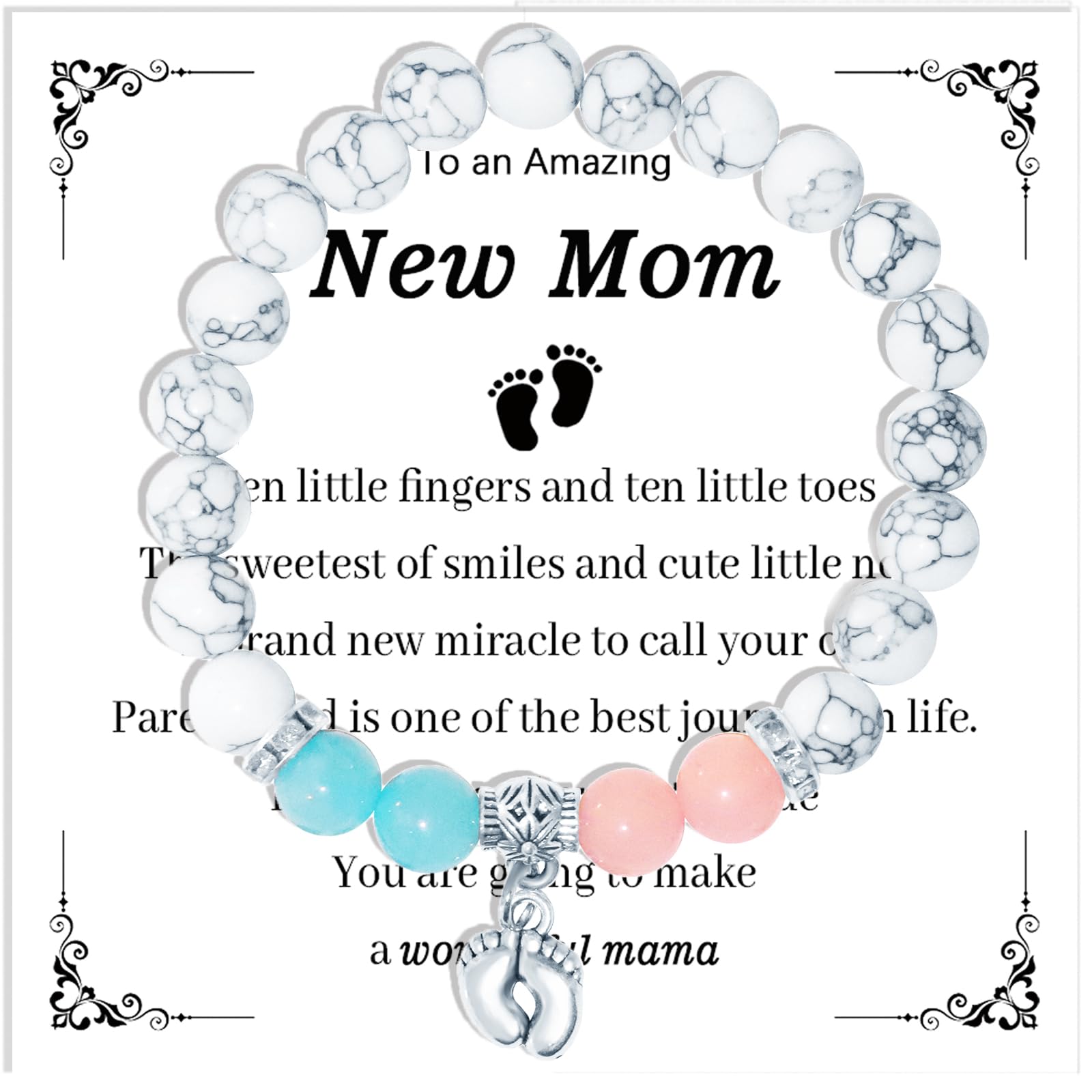AmoraKiva – Regalo para mamá nueva para mujer, pulseras naturales, regalos embarazadas para mamá por primera vez con mamá para ser tarjeta de regalo para madre nueva, 7 in Mom Bracelets, Piedra,