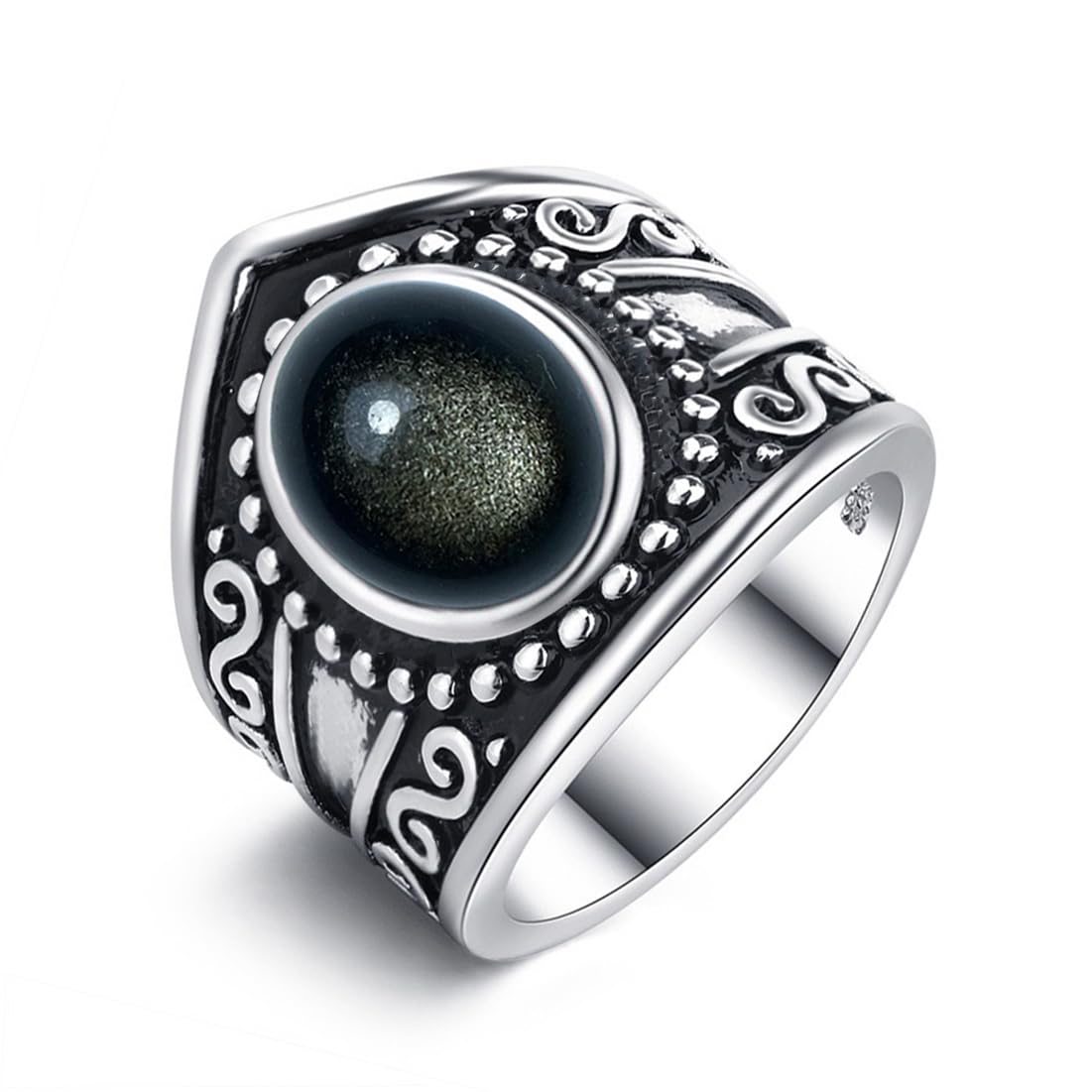 Anillo clásico de obsidiana negra, de plata de ley 925, estilo retro, con índices de dedo completo, anillo de cóctel, fiesta, regalo para mujeres
