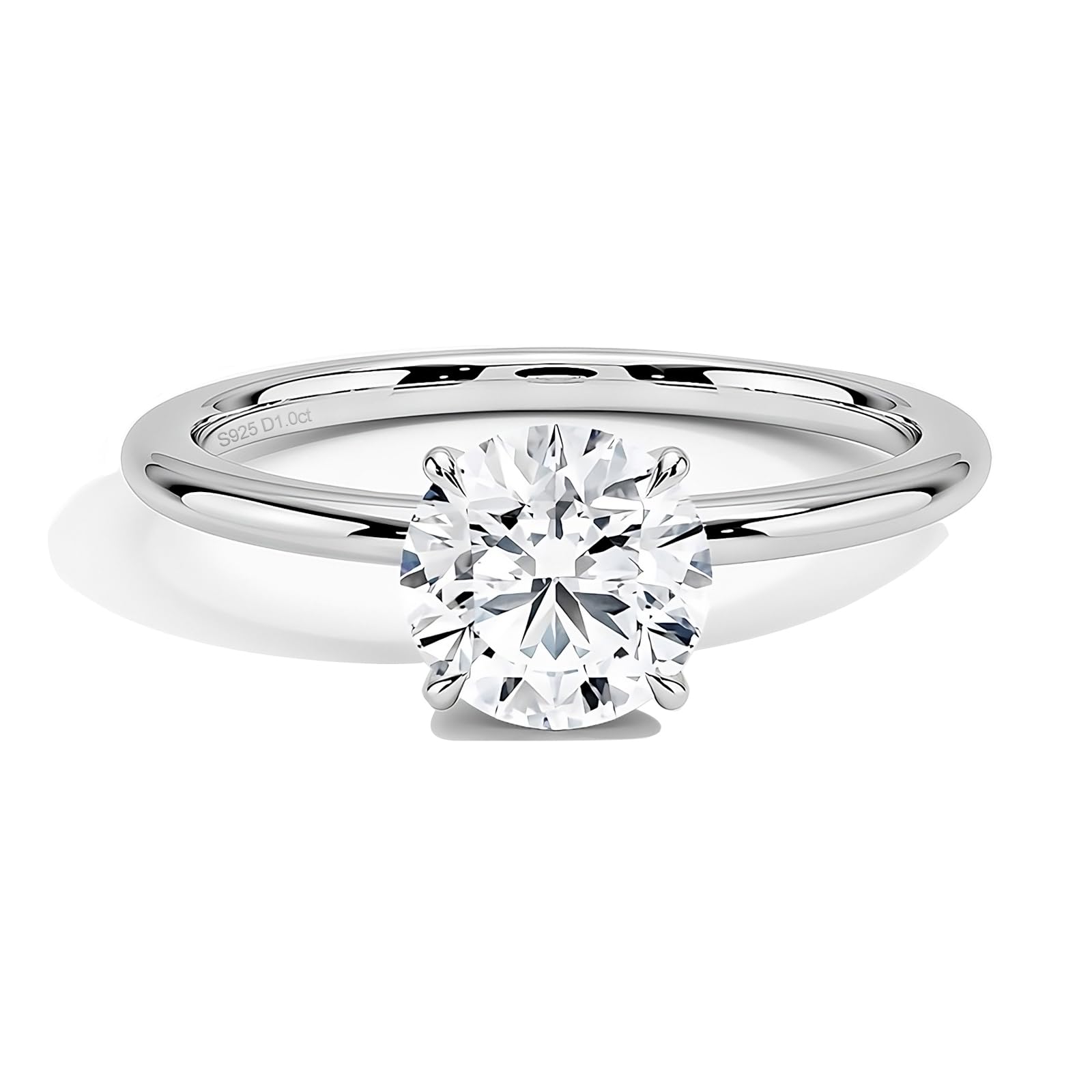 Anillo de compromiso de moissanita para mujeres y niñas, oro blanco vermeil de 1 quilate, color D, VVS1, anillo solitario de diamantes de imitación de corte redondo, anillo clásico de 4 puntas, regalo para ella
