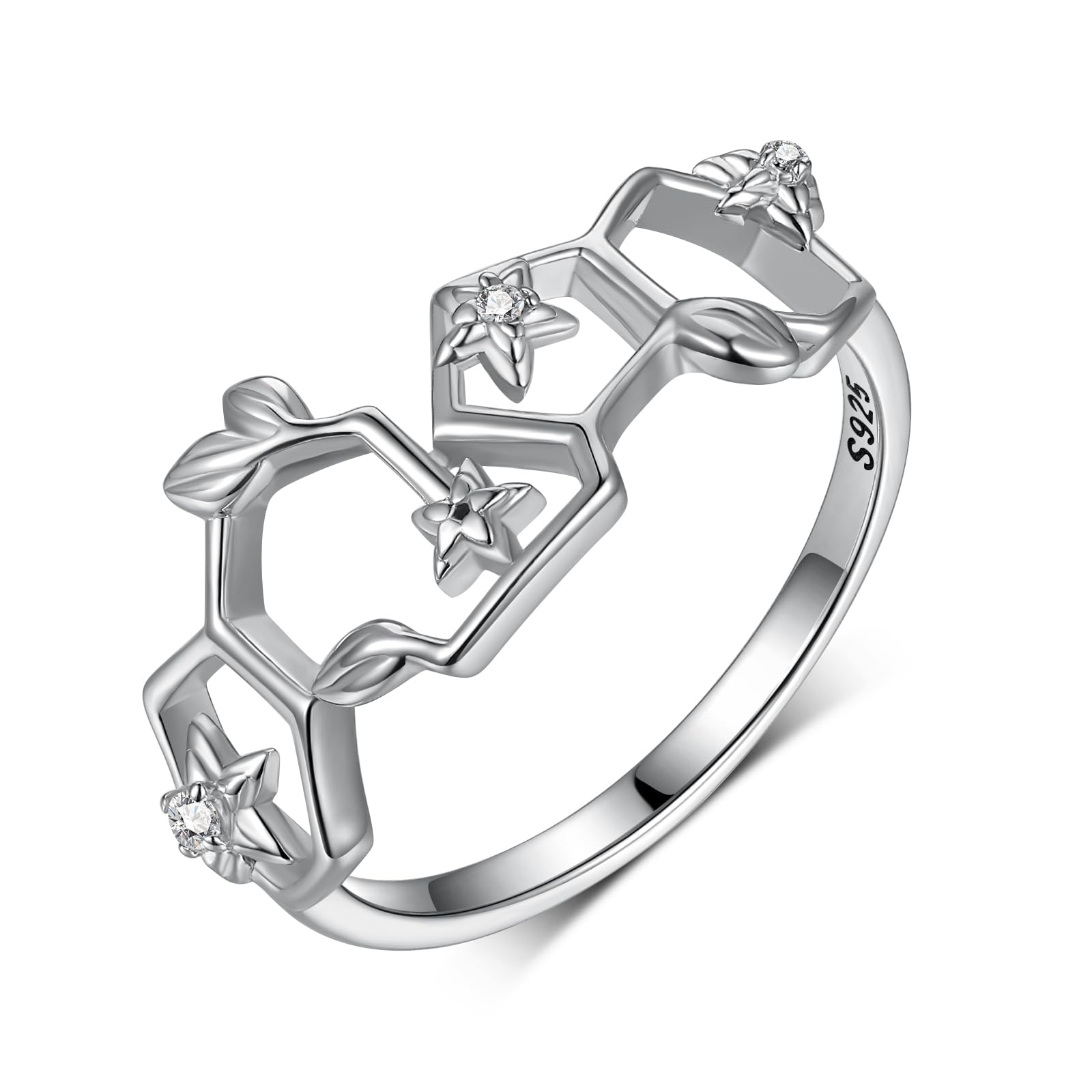 Anillo de molécula de dopamina de felicidad, plata de ley 925, estilo moderno, anillo de eternidad para mujer, joyería de ciencia, regalo ideal para químico, profesor, graduado, Plata de