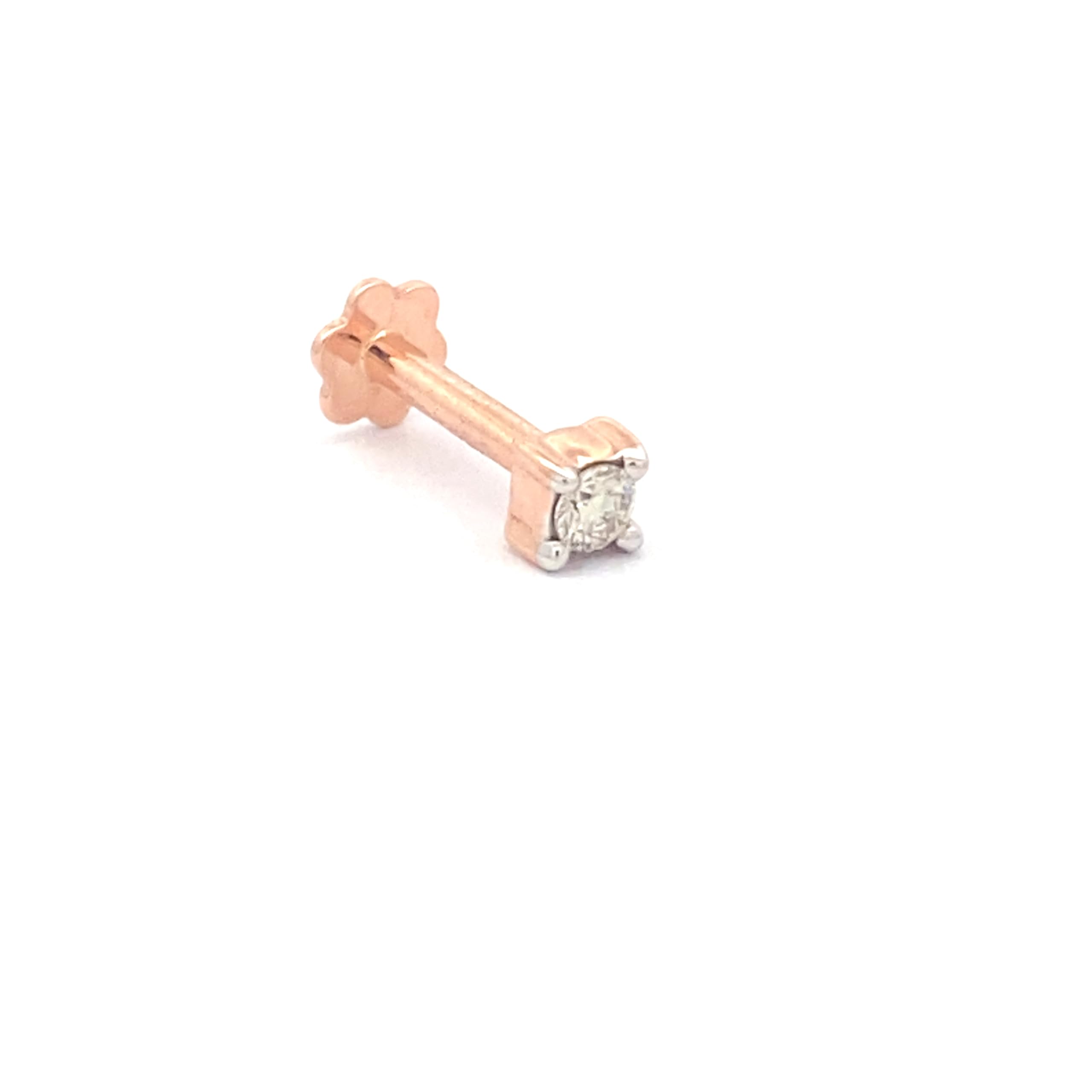 Anillo de nariz de oro rosa de 14 quilates con diamante natural de 2,5 mm (0,05 quilates) – Piercing de labio Monroe, poste de tornillo, 6 mm de largo, calibre 16, Gema, Diamante