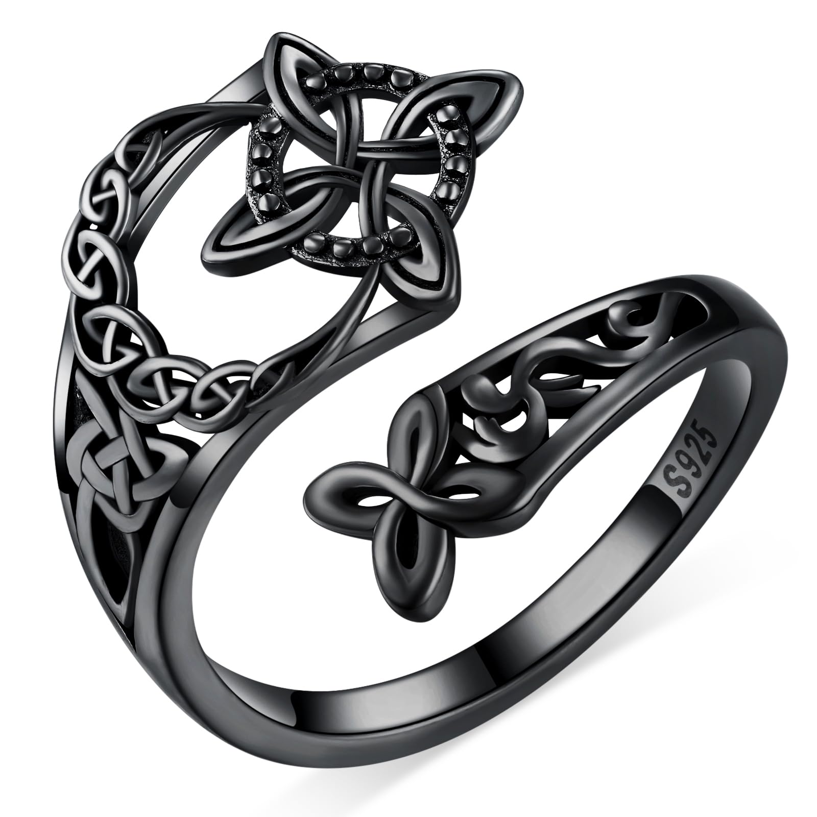 Anillo de nudo de brujas celta nudo de bruja plata 925 original de plata de ley 925, joyería de bruja para mujer