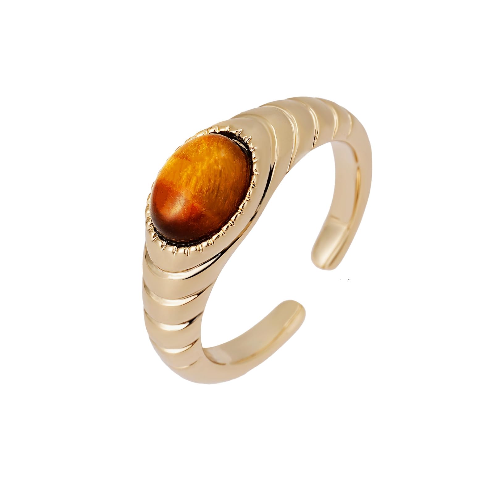 Anillo de oro con ojo de tigre, estilo clásico, grueso, abierto, minimalista, exagerado, nudo trenzado para mujer, Cobre, Ojo de tigre