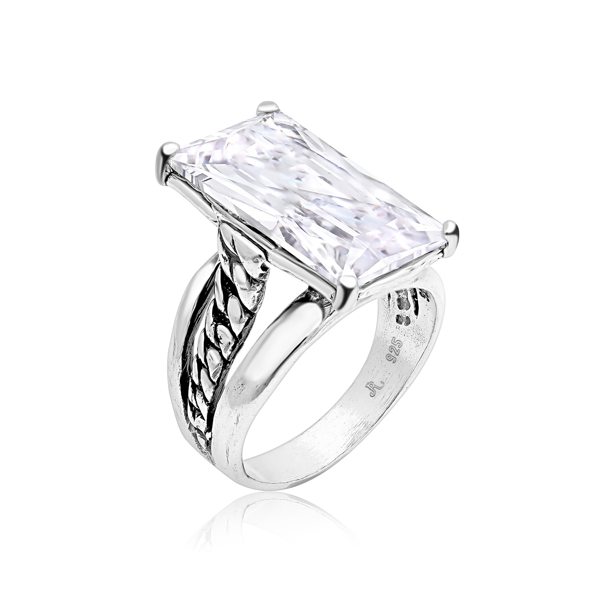 Anillo de plata de ley 925 – Cadena de eslabones con circonita cúbica baguette diseño clásico, hipoalergénico, sin plomo ni níquel, anillos artesanales para mujer