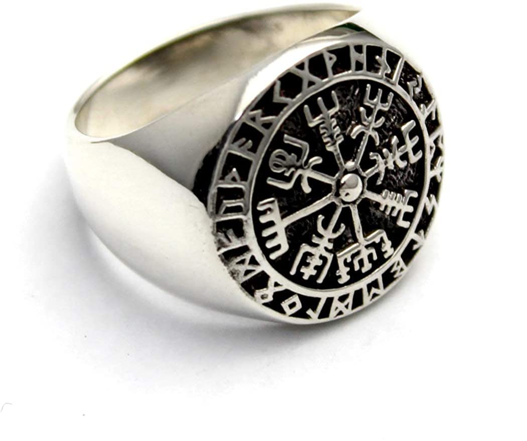 Anillo de plata de ley 925 con brújula vikinga para hombre
