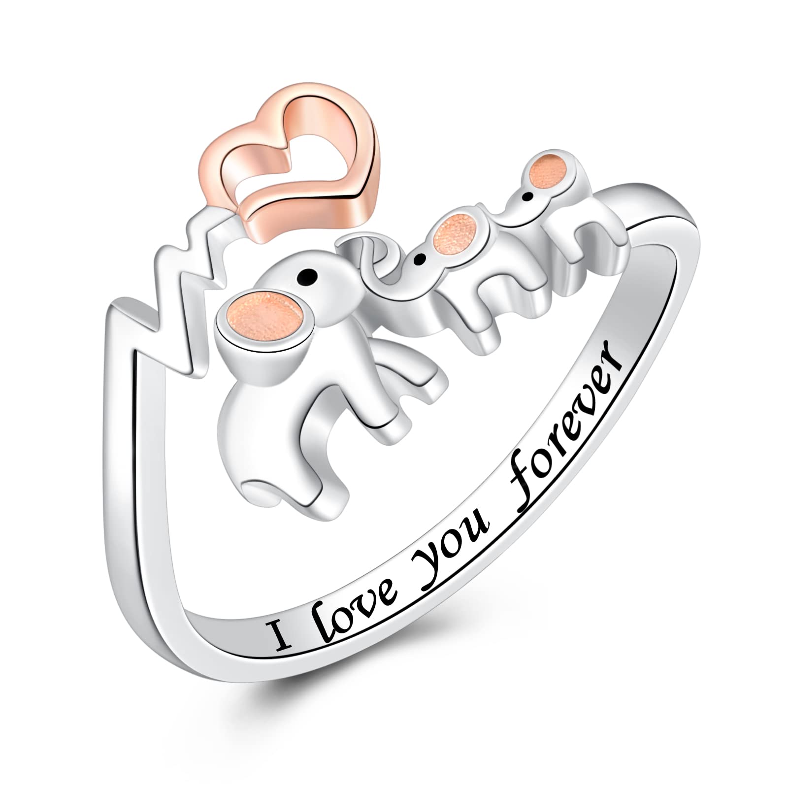 Anillo de plata de ley 925 con elefante para madre e, anillo de amor abierto de oro rosa con corazón ajustable grabado, anillos de joyería para mujeres, esposas, mamás