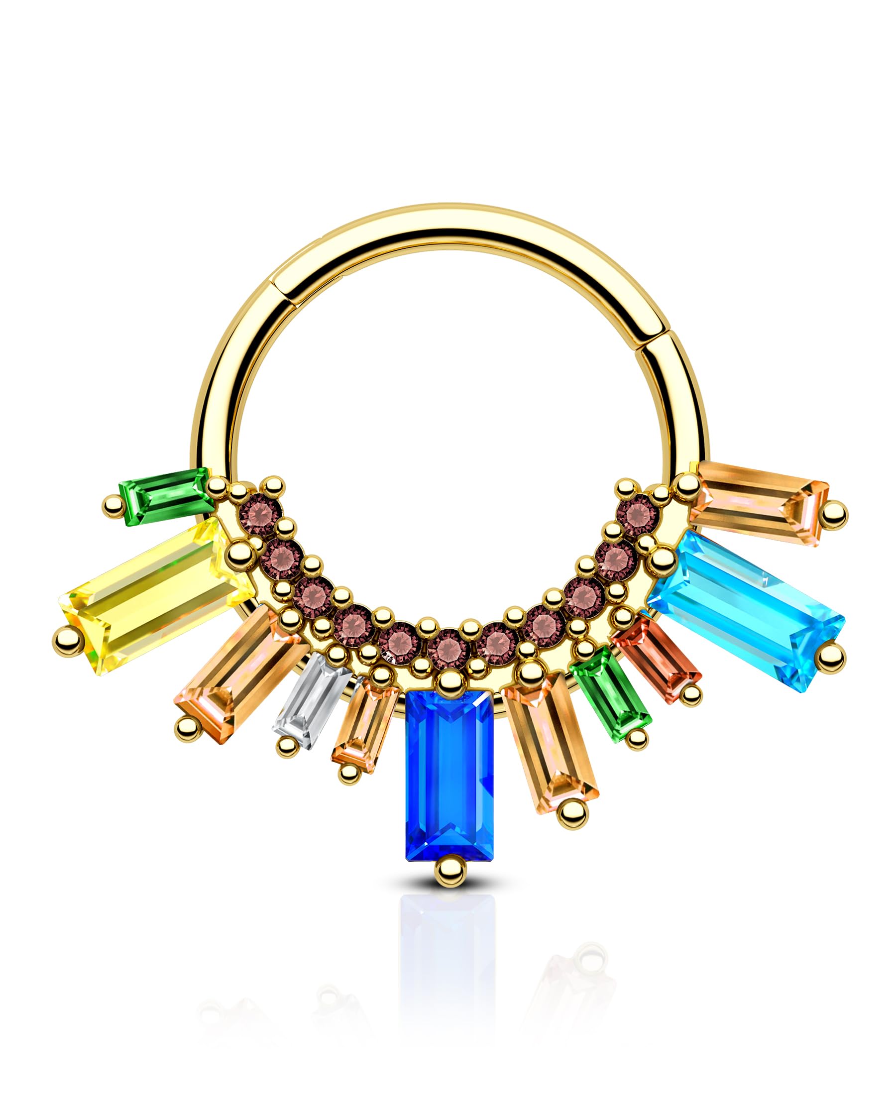 Anillo de septo de oro con circonita cúbica colorida de 16 g, joyería de septo único para mujer, piercing de Daith, joyería dorada de acero inoxidable