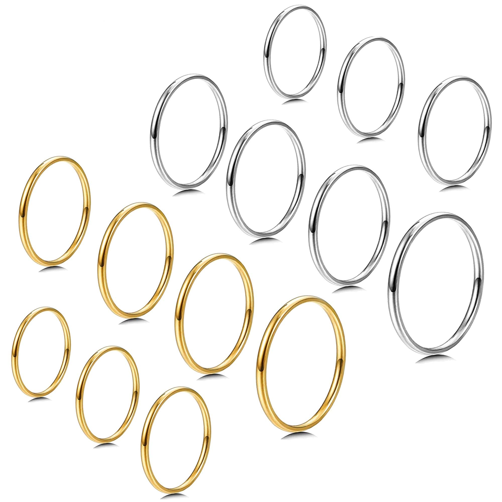 Anillos apilables de acero inoxidable de 1 mm para mujer, anillos de banda lisa dorada, anillos apilables para nudillos, anillos midi, ajuste cómodo, tamaño 3/4/5/6/7/8/9