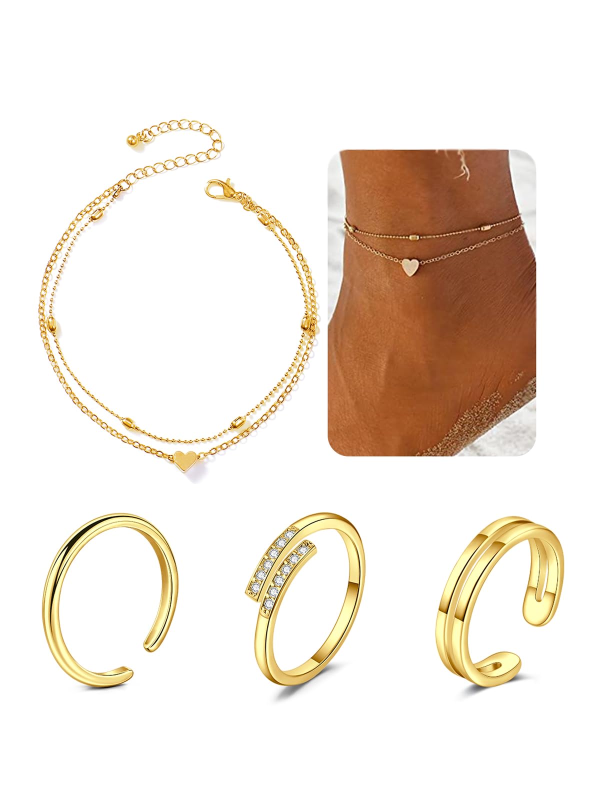 Anillos de punta dorada para mujer, pulseras de oro, tobilleras de corazón, impermeables, no se deslustran, ajustables, joyería de punta grande, anillo de cola simple, Metal, Aleación.