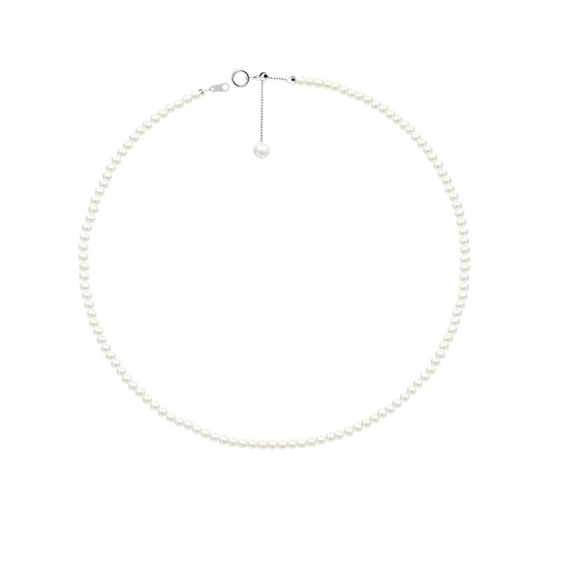 ANNAYA – Collar redondo de perlas blancas para mujer, cadena de perlas pequeñas, 35 cm + cadena de extensión ajustable S925, 5 cm, Perla, Sin piedra preciosa
