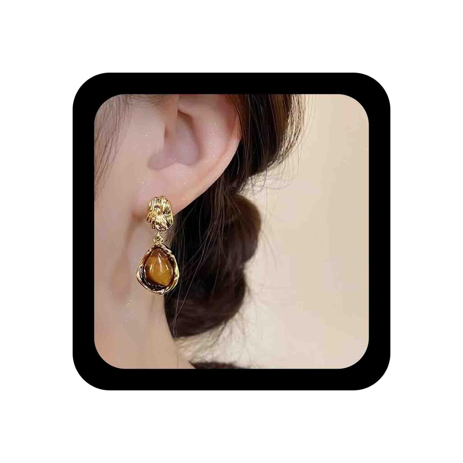arete colgantes de ámbar clásico con forma de lágrima de ámbar, color café y ámbar, Zinc, No es una piedra preciosa