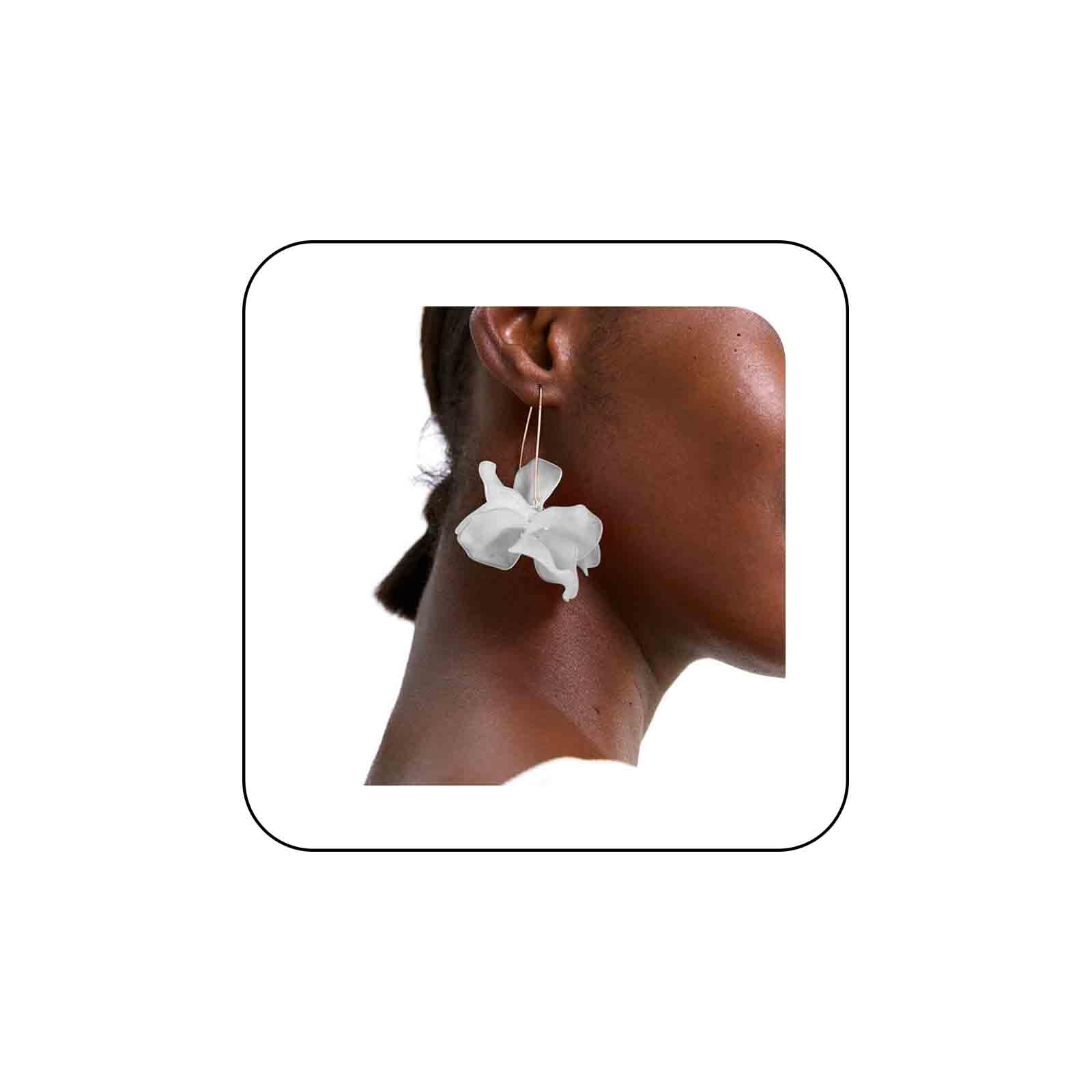 arete colgantes de flores acrílicas grandes, de pétalos blancos, de resina, florales, arete de declaración floral, aretes de novia y boda, joyería para mujer, Zinc, No es una piedra preciosa