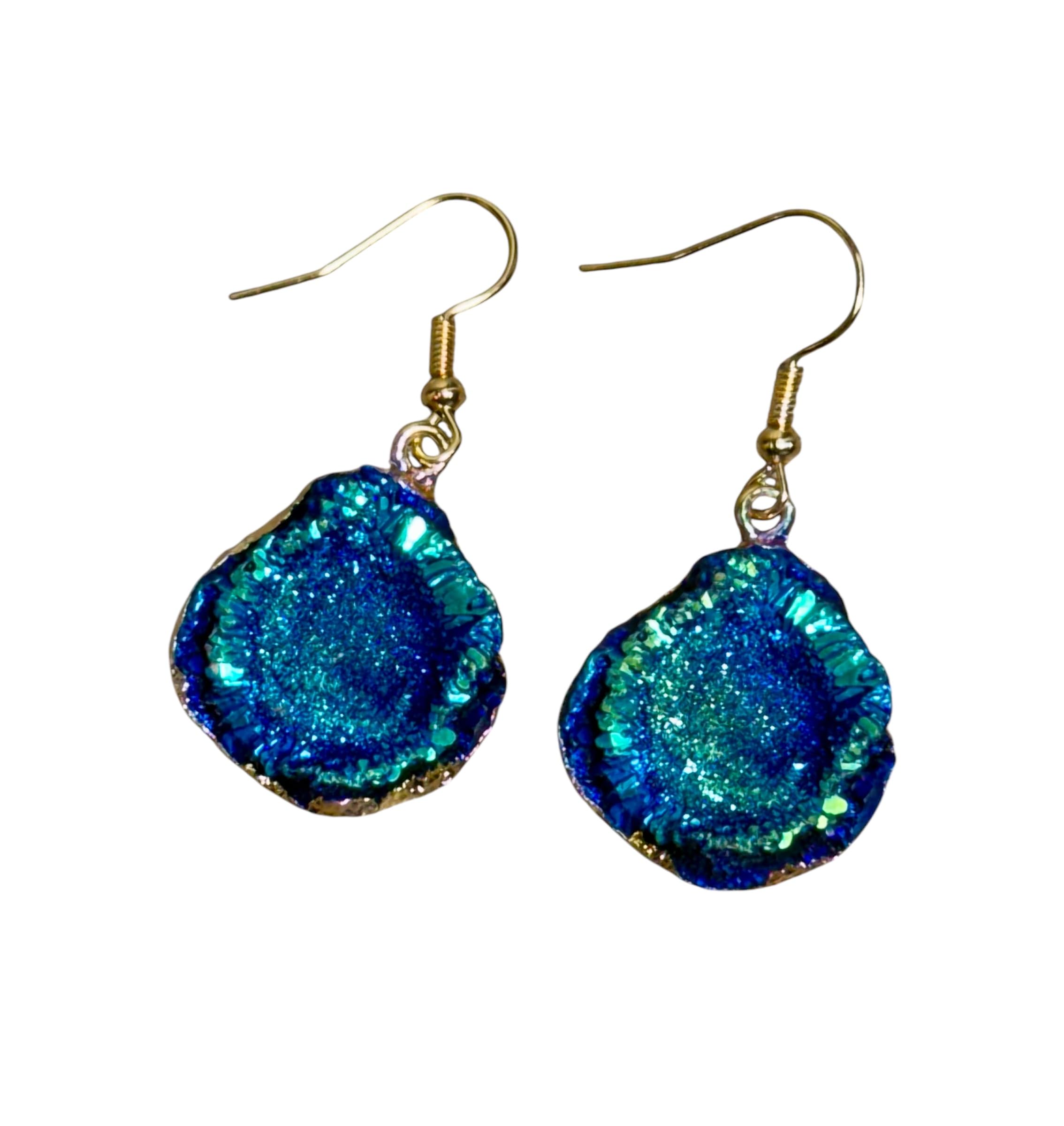 arete colgantes de geoda falsa y color azul verde, color dorado, Mediano, Resina, geoda sintética