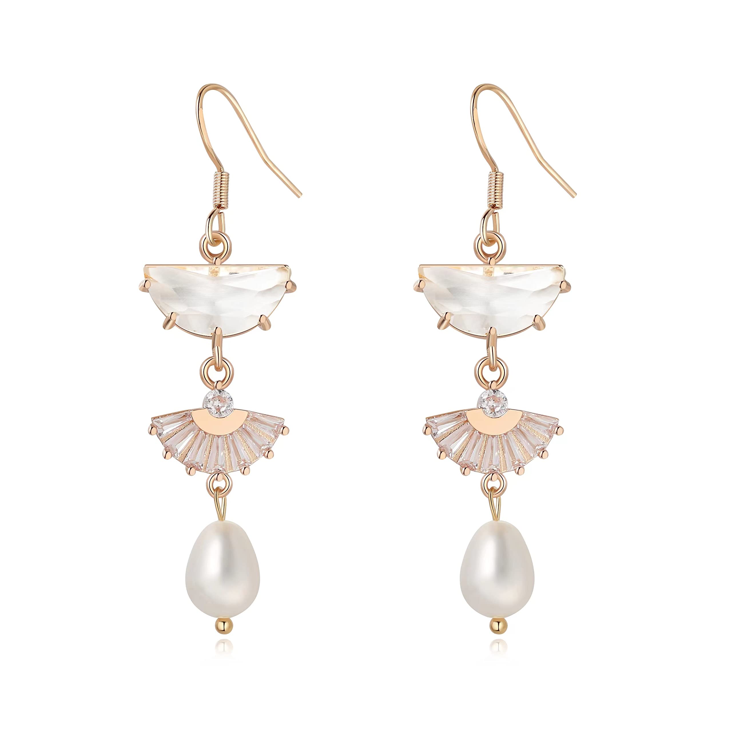 arete colgantes de perlas Art Deco clásico, oro de 14 quilates, colección bohemia multicolor de vidrio y perlas, joyería elegante para mujeres, uso formal y diario