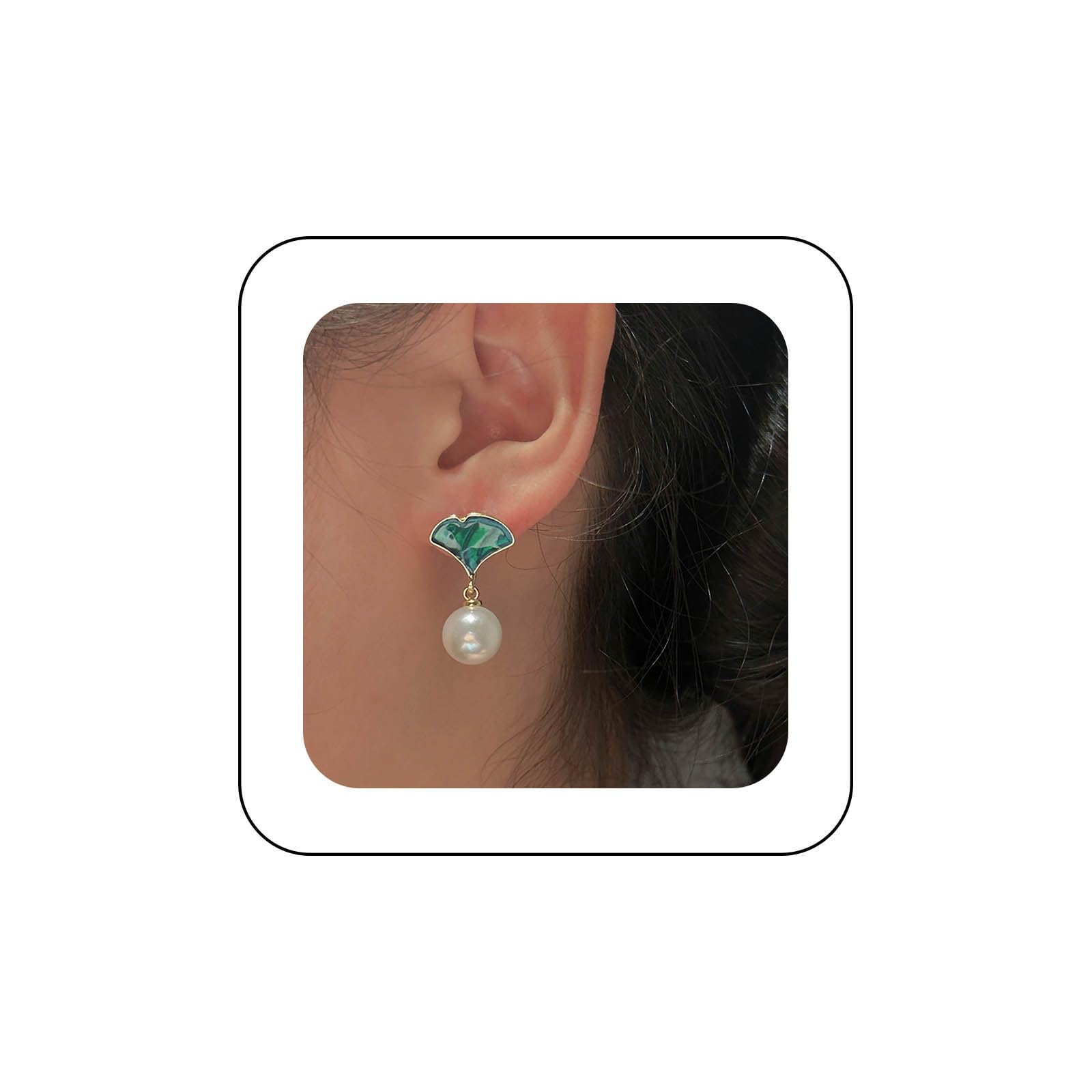 arete colgantes de perlas bohemias con forma de perlas redondas y perlas de esmalte verde, arete de hojas de ginkgo pequeñas, joyas para mujeres, Zinc, No es una piedra preciosa