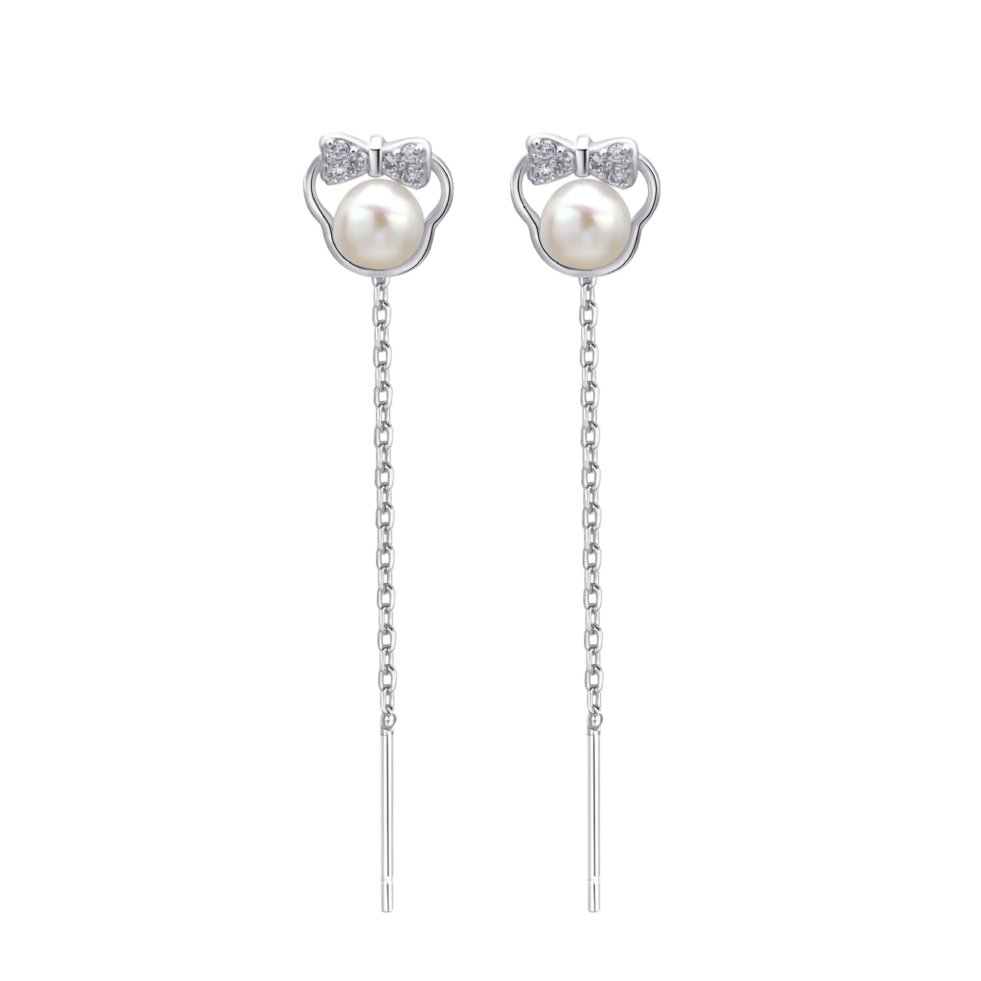 arete colgantes de plata de ley 925 con circonita cúbica de vidrio, nudo de lazo, ratones, cadena larga, colgante, delicados, cumpleaños, Navidad, regalos hipoalergénicos, Plata de ley, Circonia
