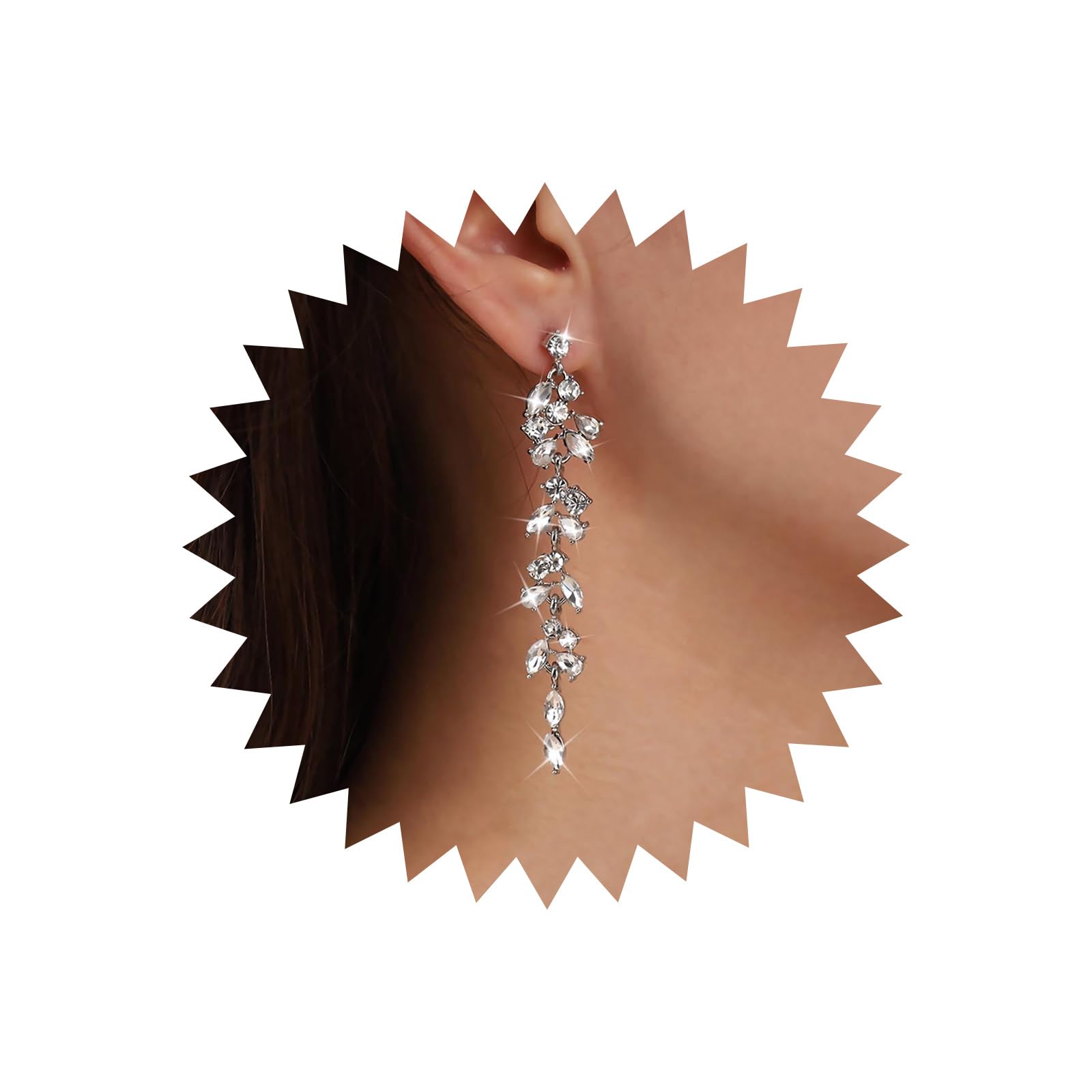 arete colgantes de vidrio bohemio con forma de araña de vidrio para novia, boda, arete colgantes de plata con diamantes de imitación, arete largos de circonita cúbica, Zinc, No es una piedra