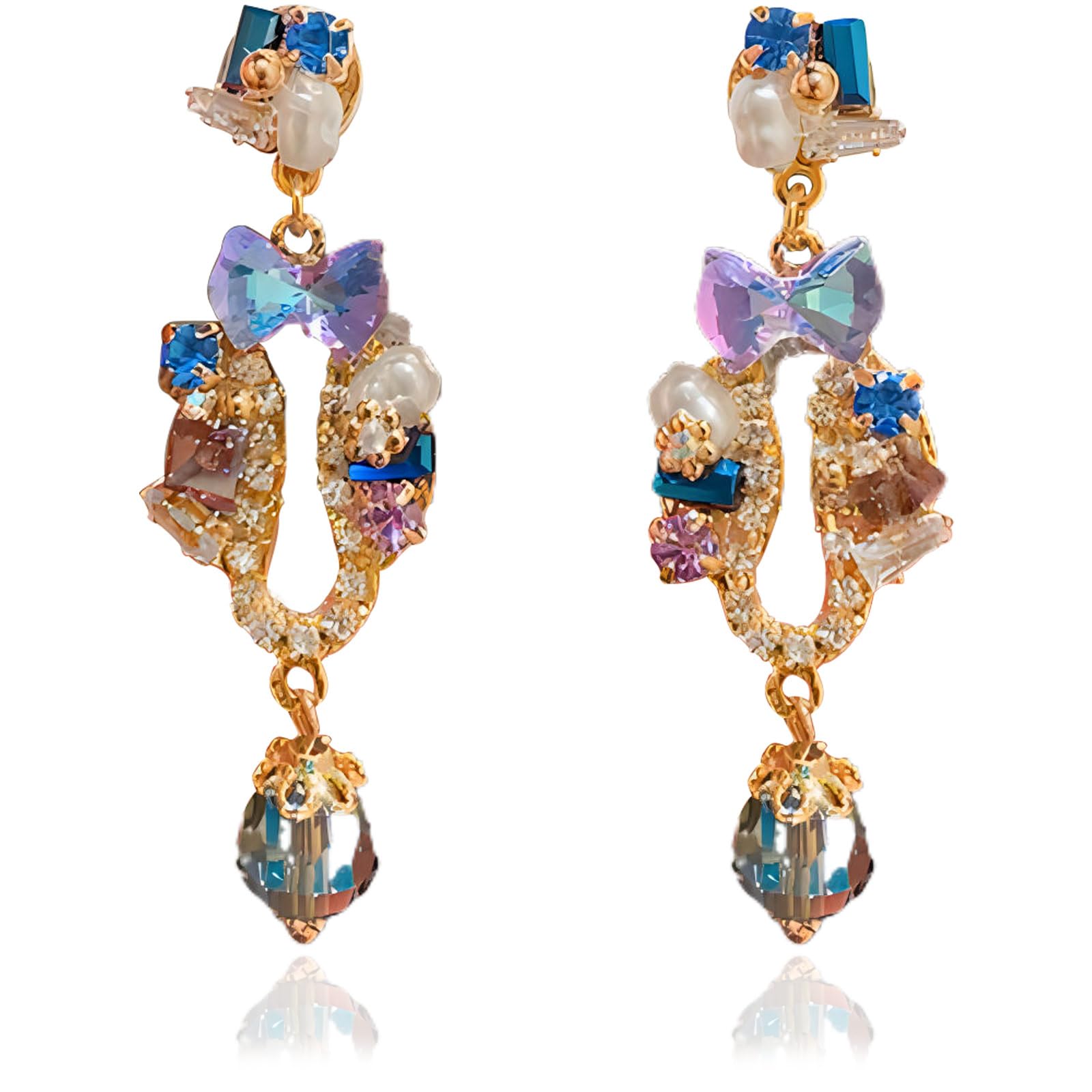 arete con borlas de diamantes de imitación para mujer, diseño de lágrima, filigrana de vidrio, cadena de araña de vidrio colgante, color azul y colorido, aretes colgantes de marquesa para