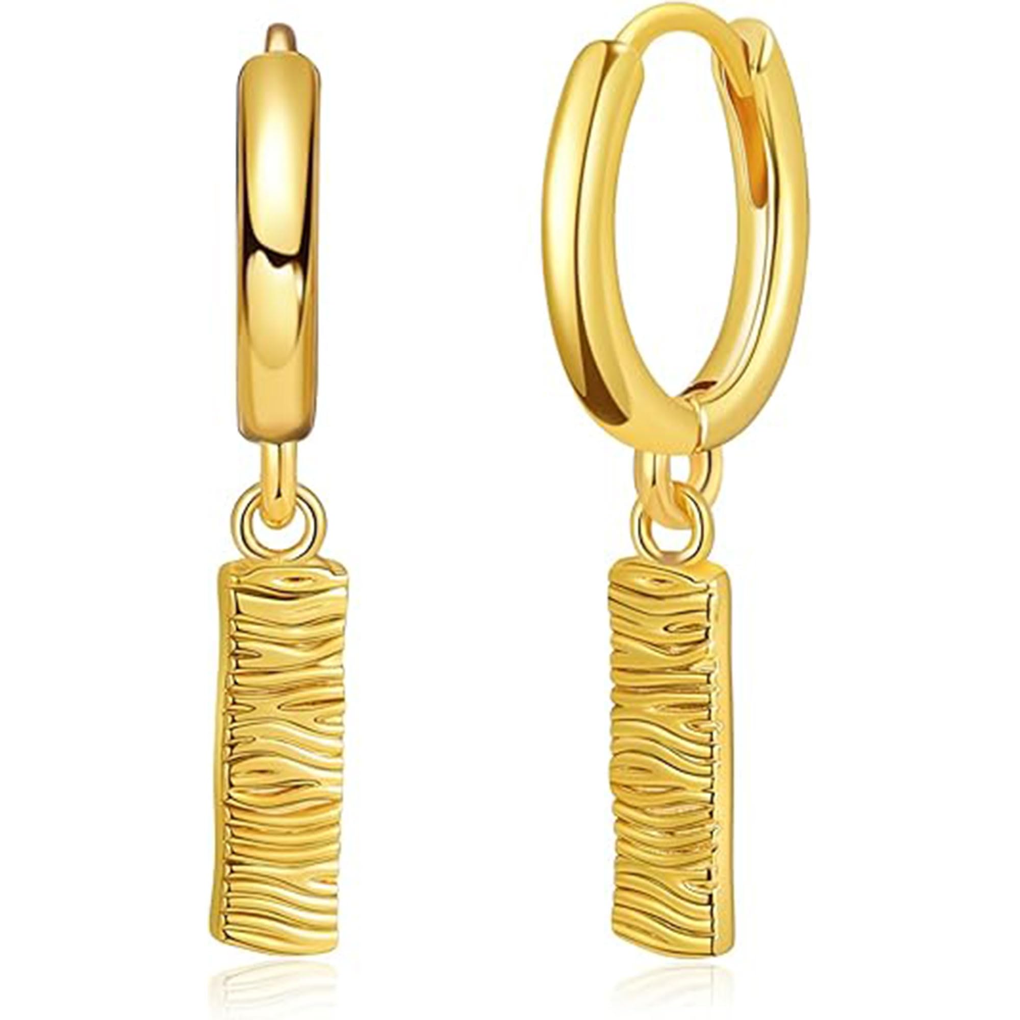 arete cuadrados de cobre chapados en oro de 18 quilates con textura irregular para mujer, Cobre, No es una piedra preciosa