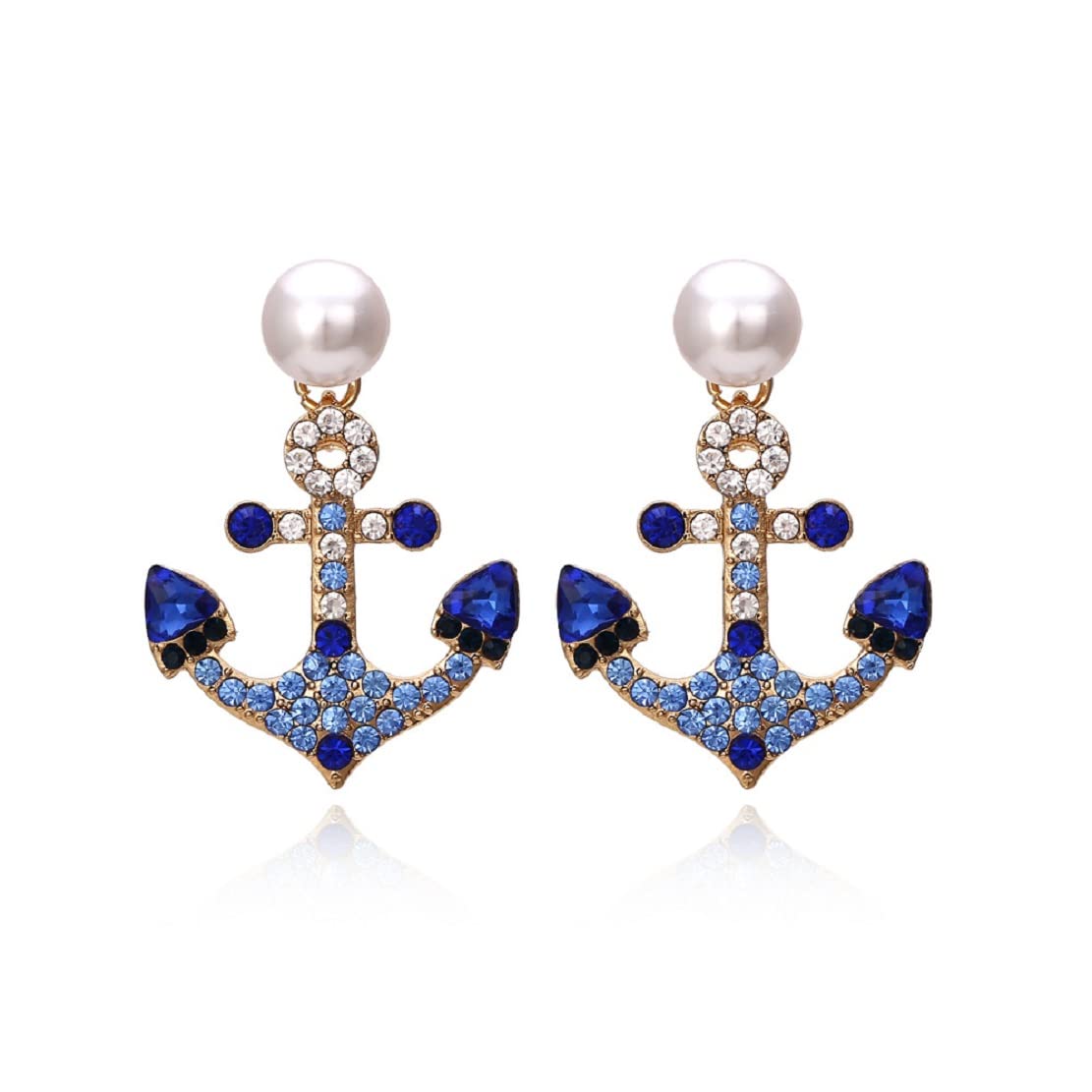 arete de ancla azul para mujer, bonitos aretes de ancla náutica, aretes colgantes de ancla marinera, hipoalergénicos, aretes de ancla con símbolo de barco marinero, aretes bohemios de ancla del