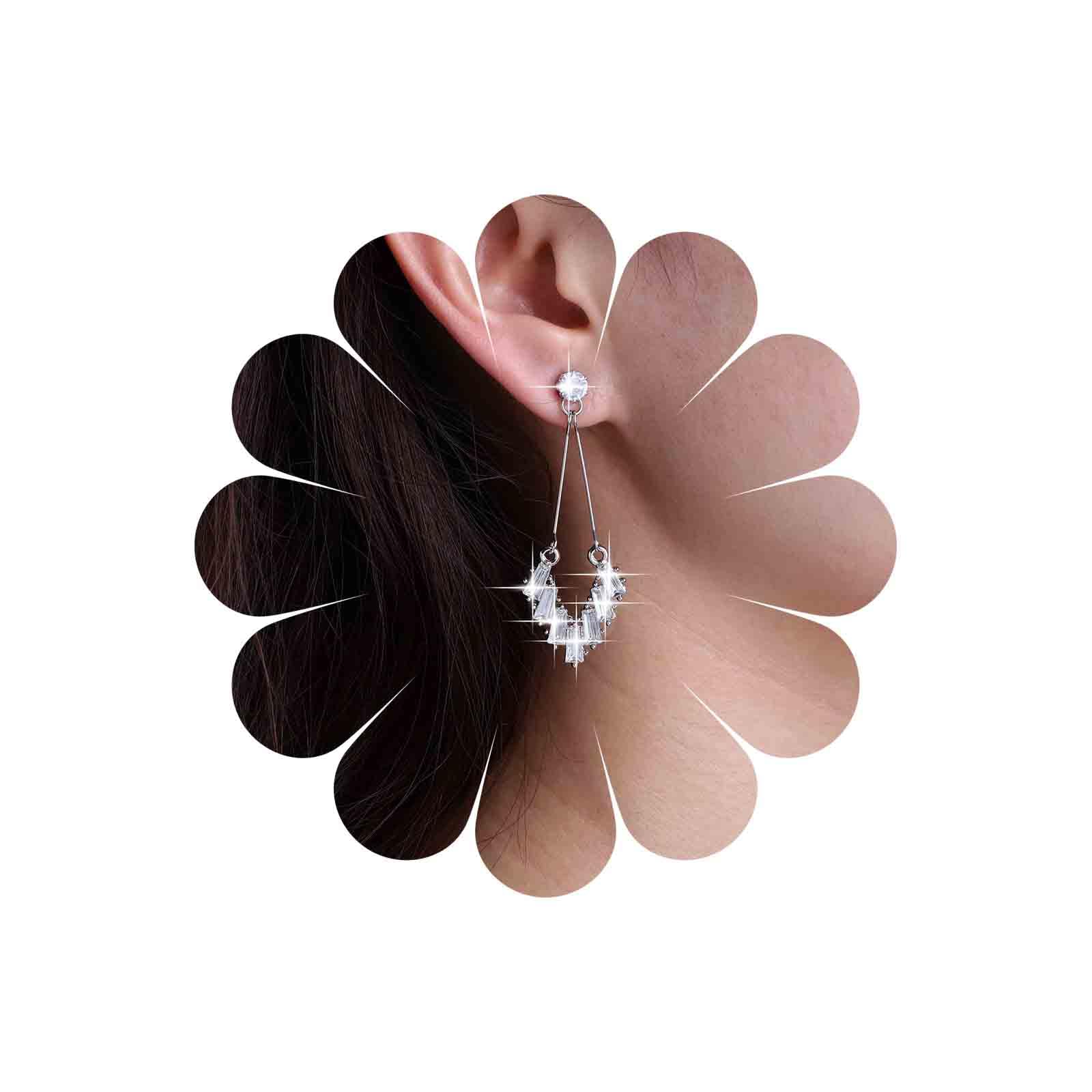 arete de araña de vidrio largos con diamantes de imitación, aretes colgantes de circonita cúbica de plata, aretes de gota de circonita cúbica, aretes de triángulo geométrico, joyería para