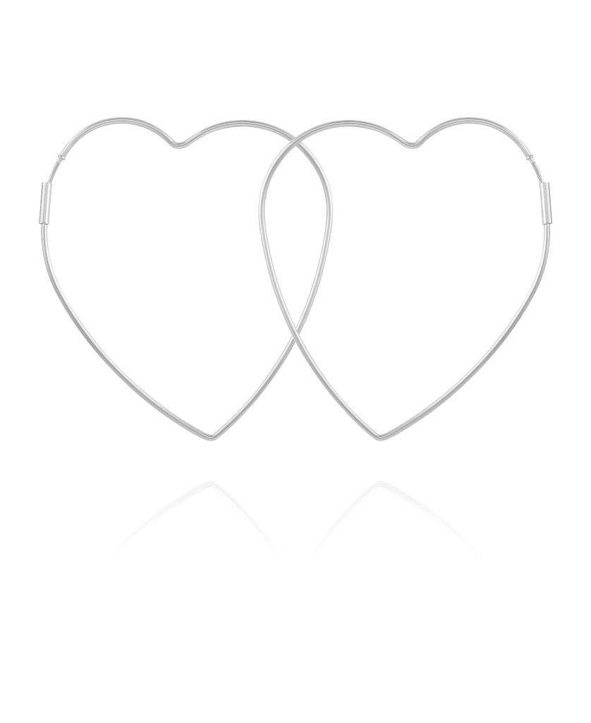 arete de aro de alambre con forma de corazón plateado extragrandes, Una talla, Metales no preciosos, Sin gemas.