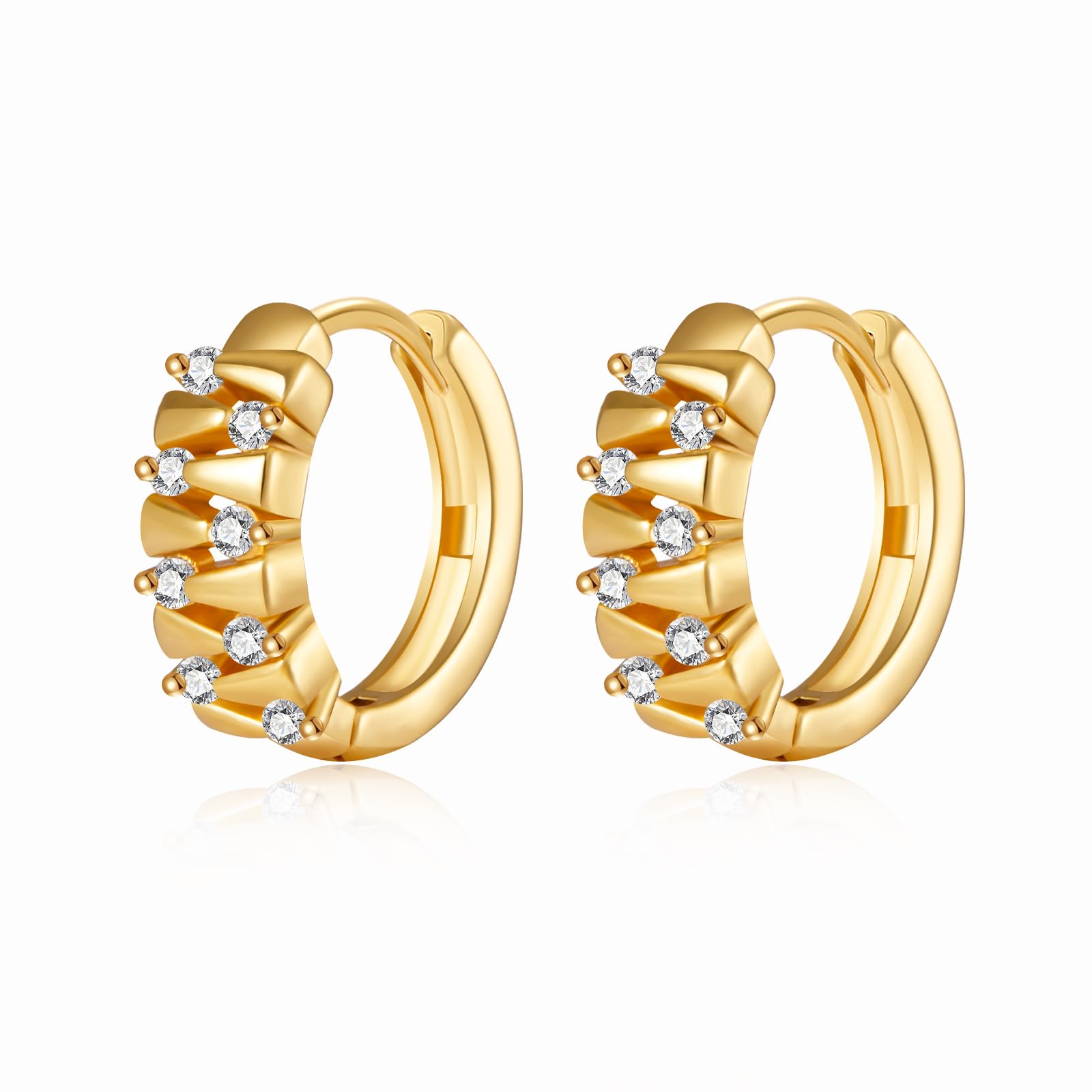 arete de aro de cobre chapados en oro de 18 quilates con forma escalonada para mujer, Cobre, No es una piedra preciosa