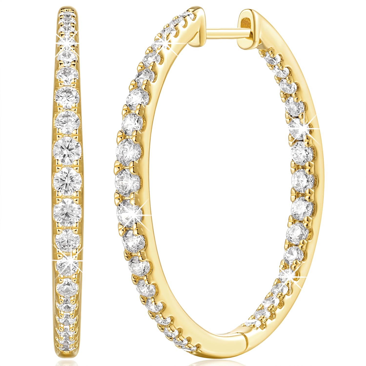 arete de aro de oro de 14 quilates para mujer, aretes de aro de diamante, aretes de aro de oro deslumbrantes, aretes de aro de oro variados tamaños de piedra, aretes de oro