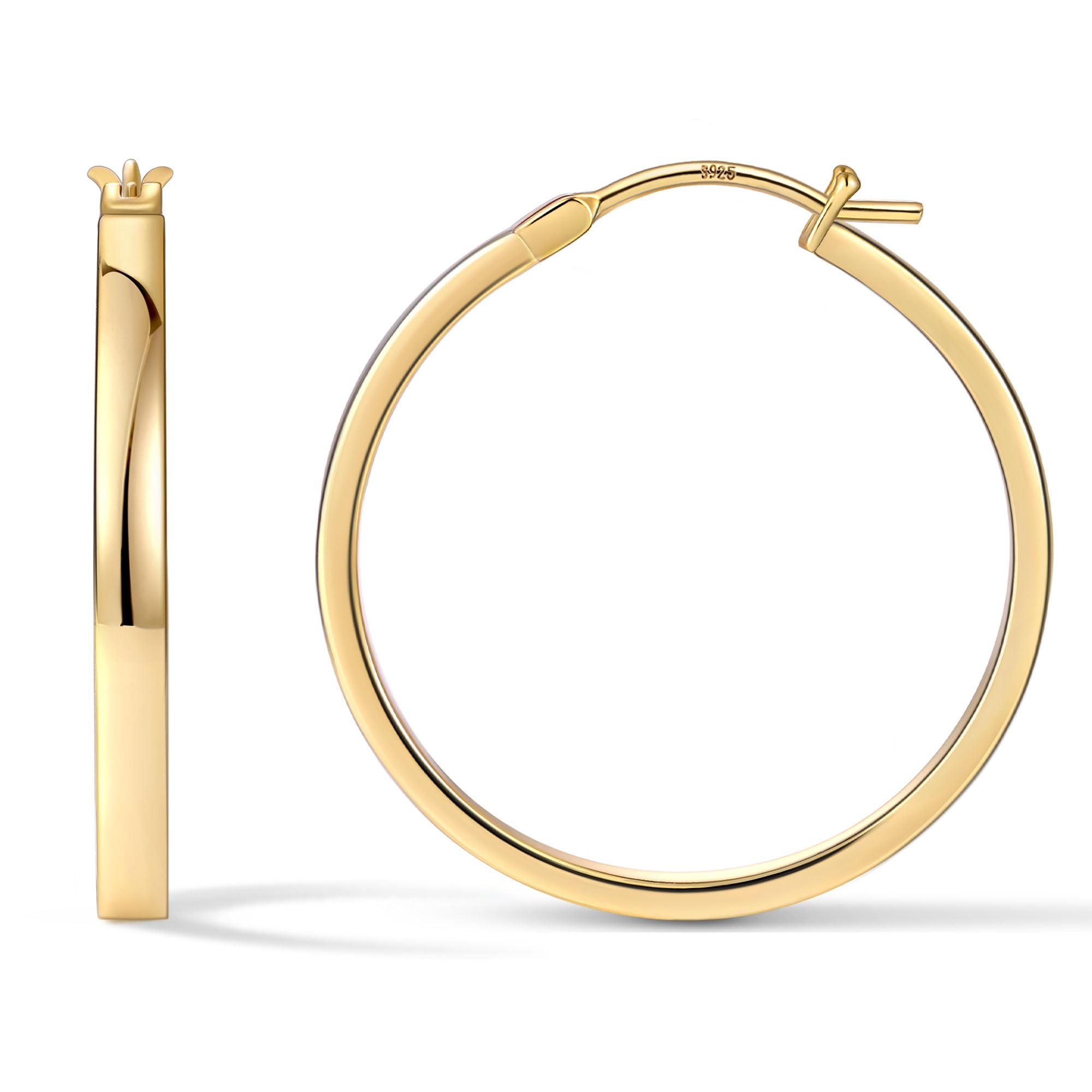 arete de aro de oro plano para mujer, chapados en oro real de 14 quilates con poste de plata de ley 925