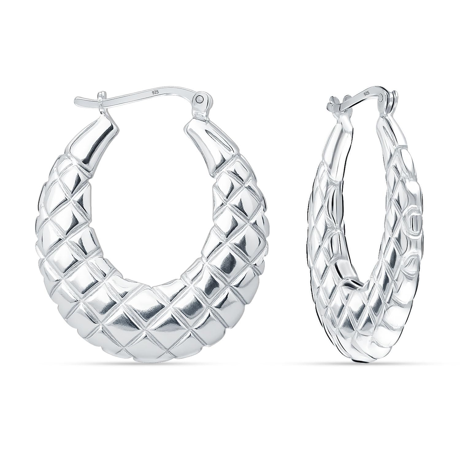 arete de aro gruesos de plata de ley 925 para mujer, aretes de aro ovalados texturizados, diseño italiano con aros de camarón, 33 mm, Plata de ley, No es una piedra preciosa