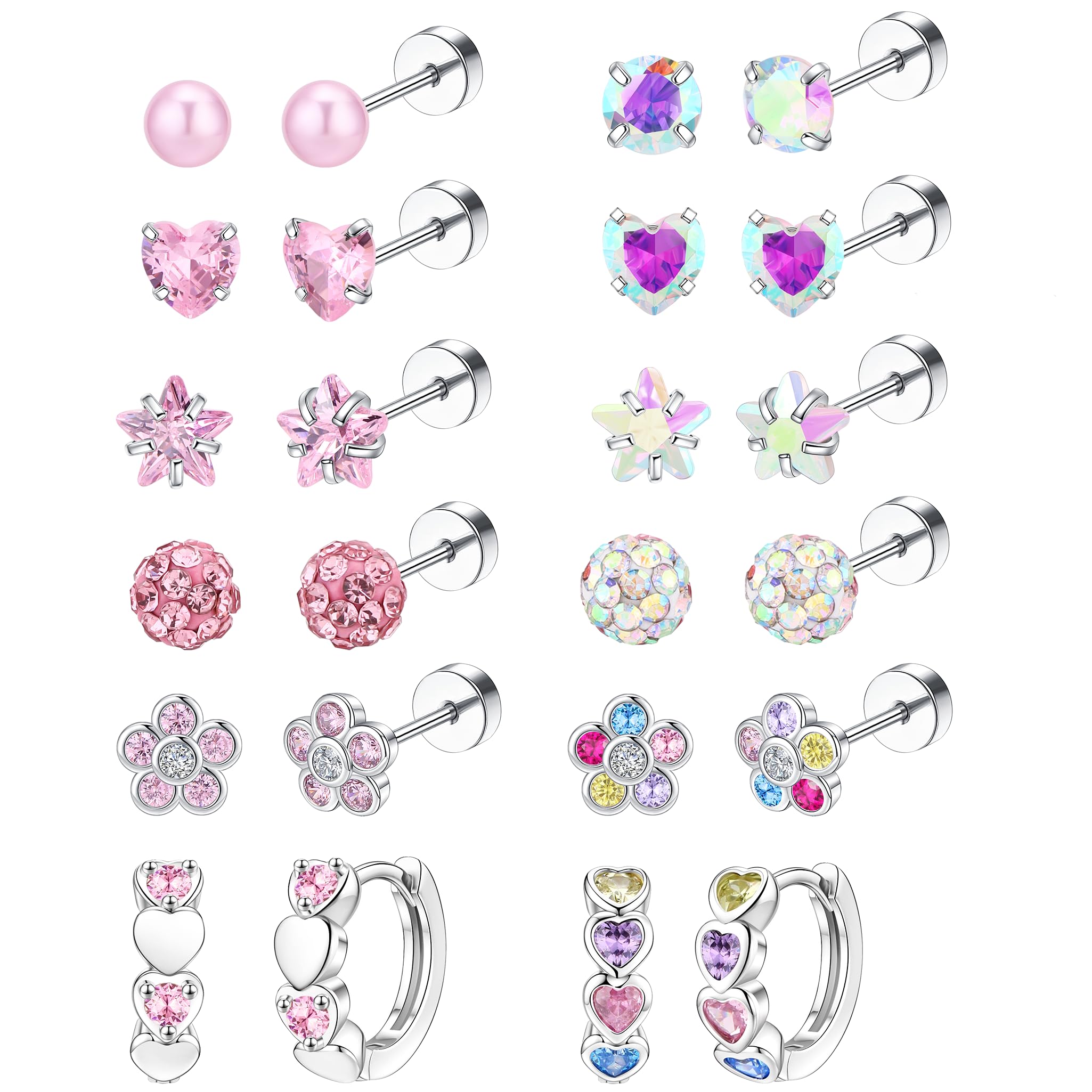 arete de aro hipoalergénicos de plata para mujer, pequeños aretes de acero quirúrgico con cierre de rosca, bonitos aretes colgantes de color rosa y colorido con circonita cúbica para orejas sensibles