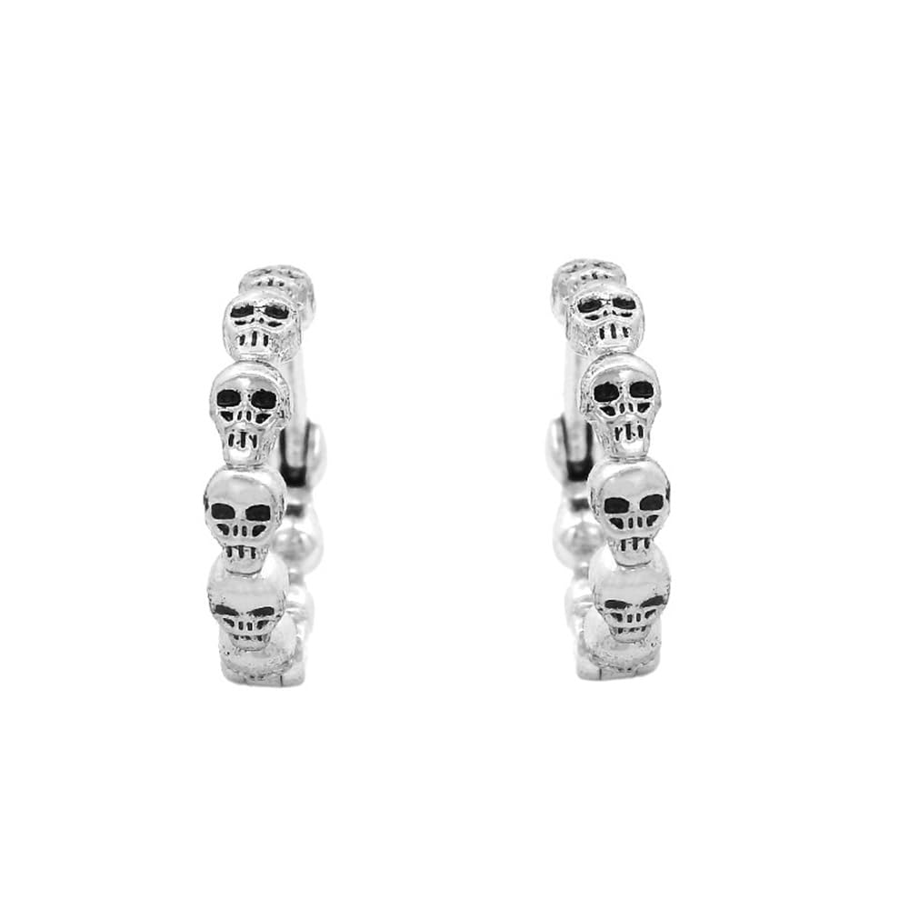 arete de aro pequeños de calavera punk para mujeres y hombres, chapados en plata, cartílago, clásico, gótico, personalizados, hipoalergénicos, joyería de moda, 11.0 Millimeters Inner Diameter