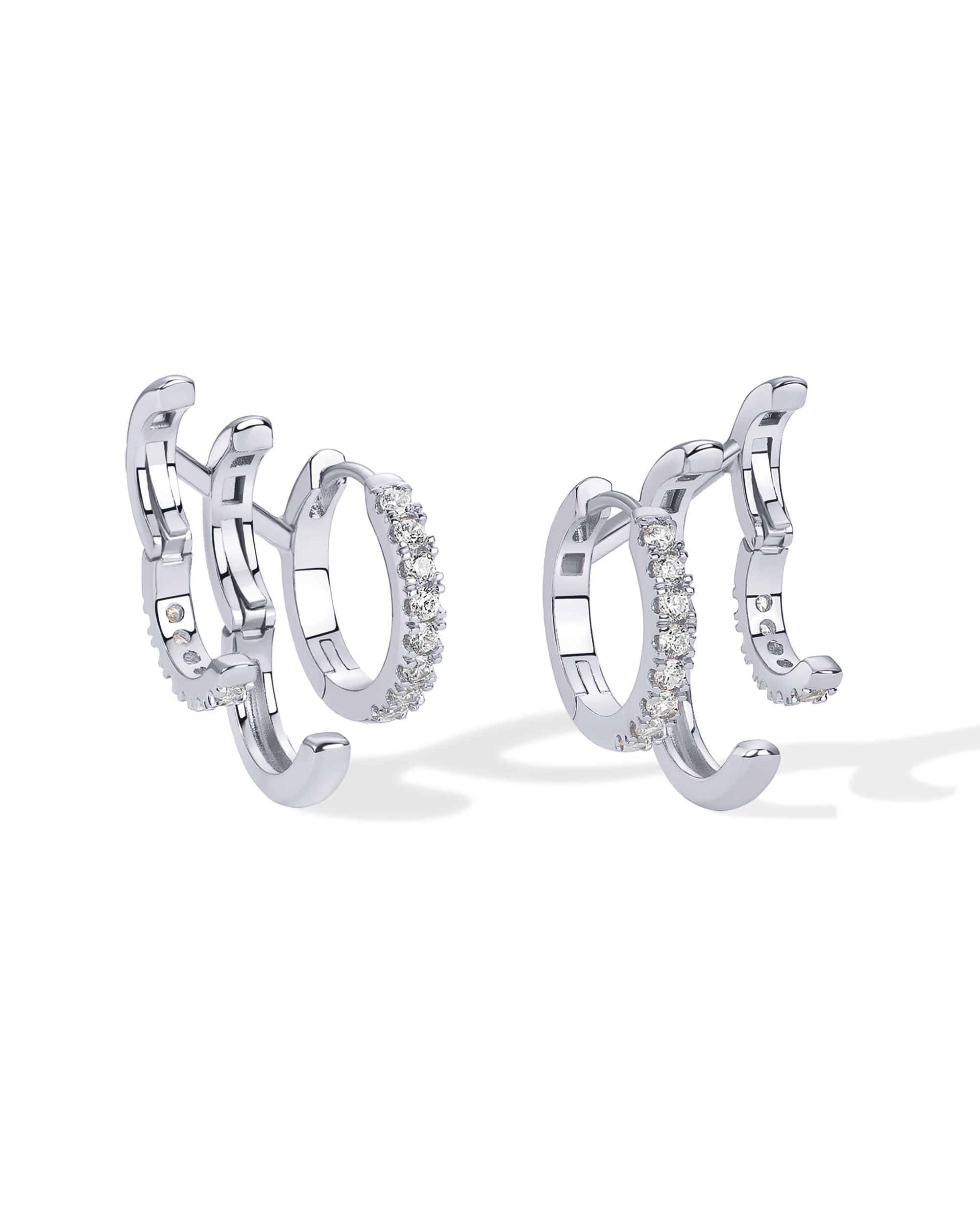 arete de aro triples chapados en oro de 14 quilates con postes de plata de ley | Sin piercings múltiples aretes de oruga para mujer