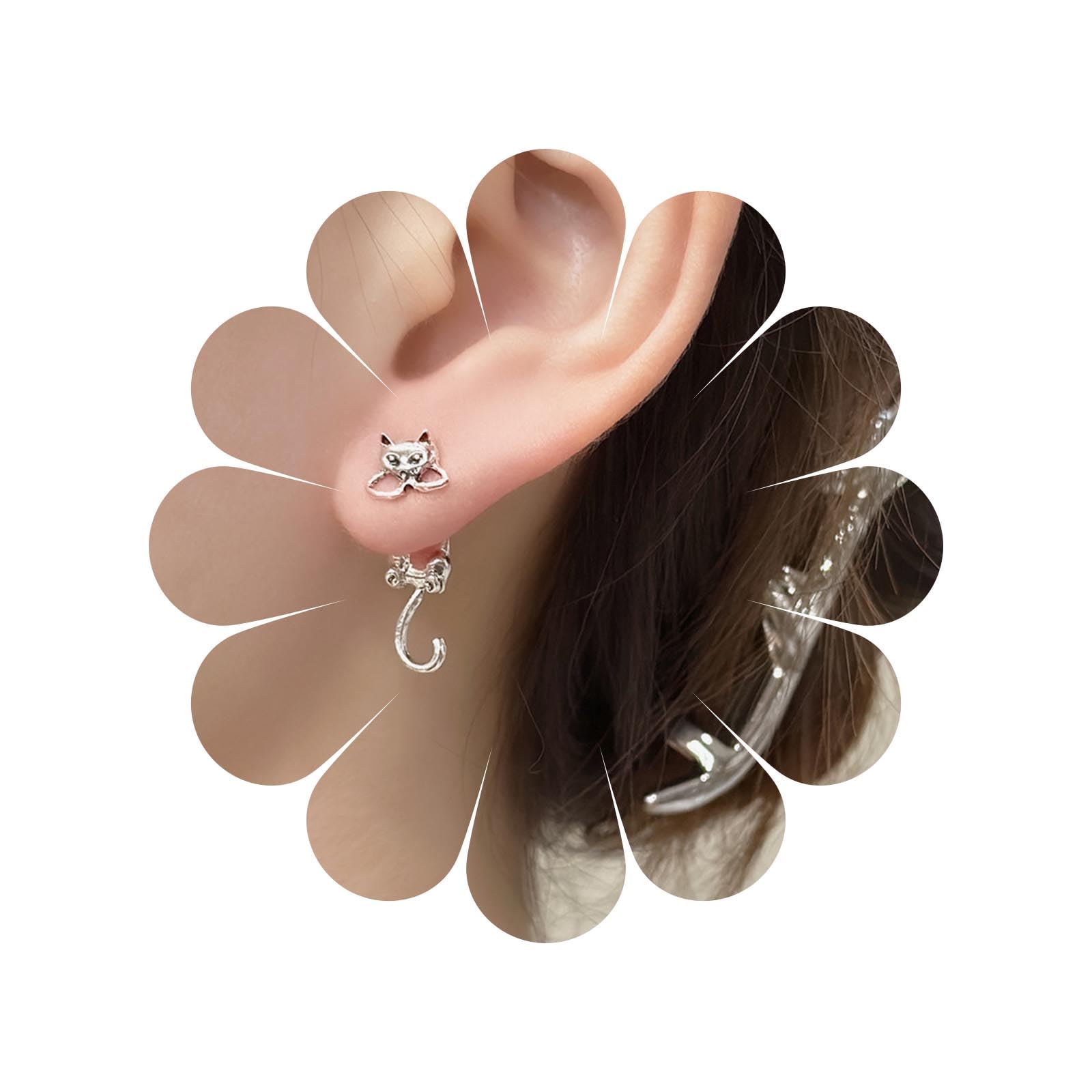 arete de chamarra clásico con orejas de gato, de plata, para gatos, divertidos aretes de gato, bonitos aretes de animales, joyería para mujer, Zinc, No es una piedra preciosa