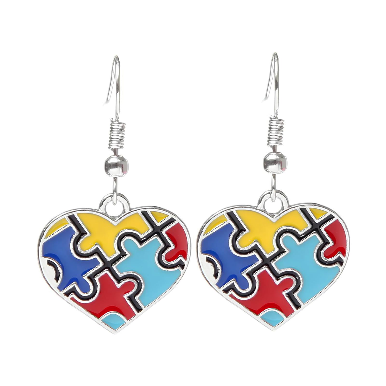 arete de conciencia sobre el autismo – Coloridos rompecabezas de joyería, regalo para profesores de autismo, madres y partidarios, aretes de aleación hipoalergénicos para mujeres