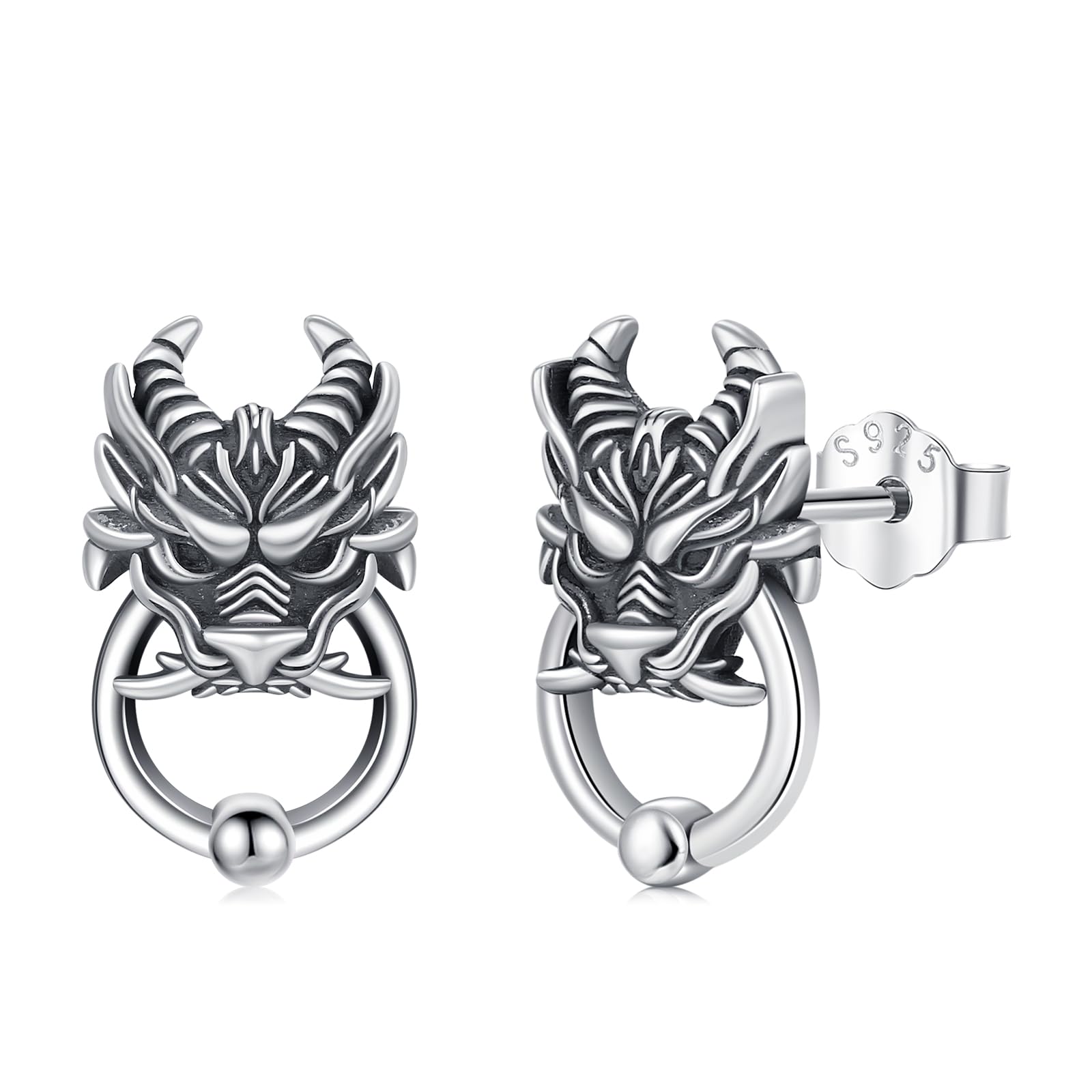 arete de dragón de plata de ley 925 con diseño de dragón, joyería de dragón, regalos para mujeres y hombres, Mediano, Plata de ley, No es una piedra preciosa