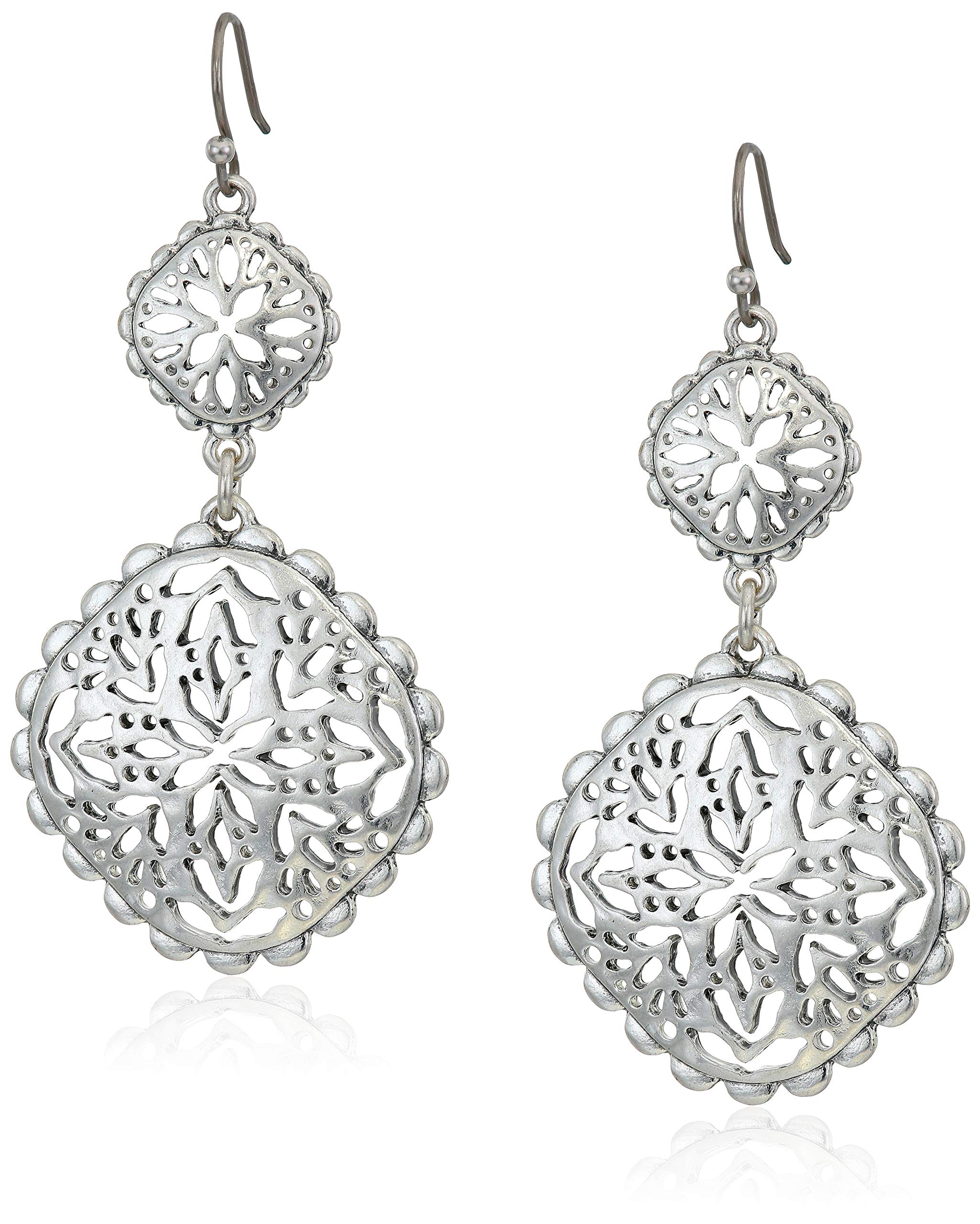 arete de gota de brújula calada de plata para mujer, talla única, Una talla, Plata Metal Plata