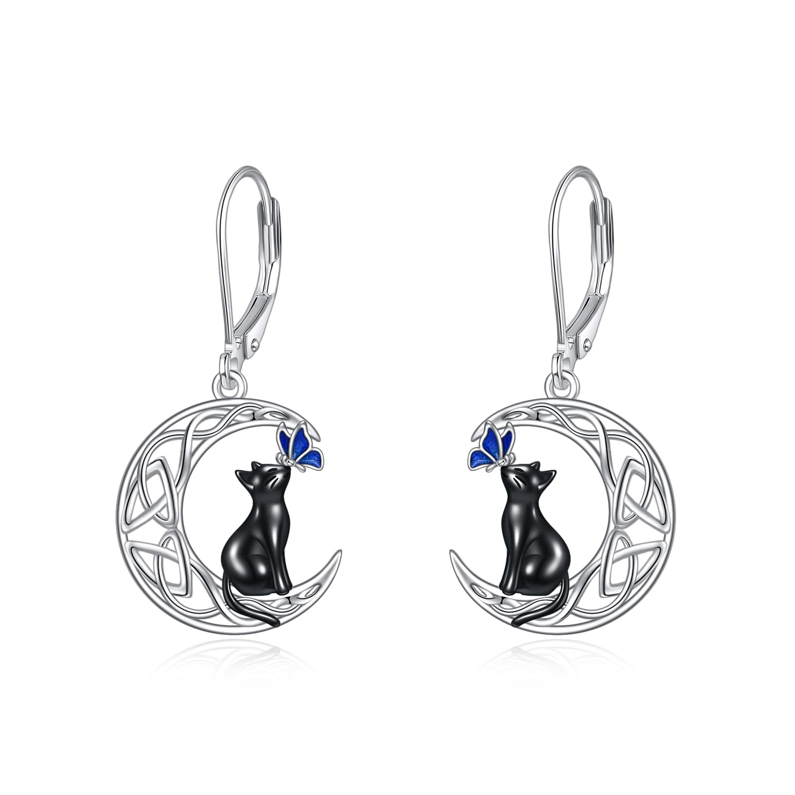 arete de mariposa con forma de luna de ley 925, color azul, mariposa, negro, regalo de cumpleaños, Navidad, para mujeres, esposa, amantes de los gatos, Middle, Plata de ley, No es una